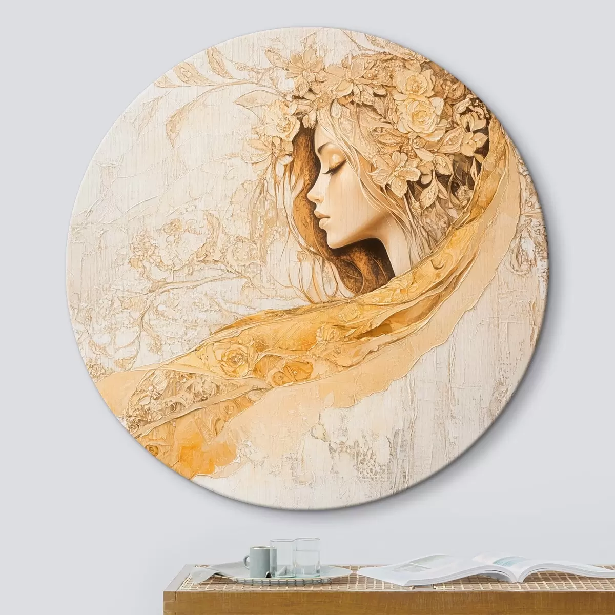Runde Wandbilder Sanftes Mädchen im Stil der Ölmalerei mit Blumen Nr r42616