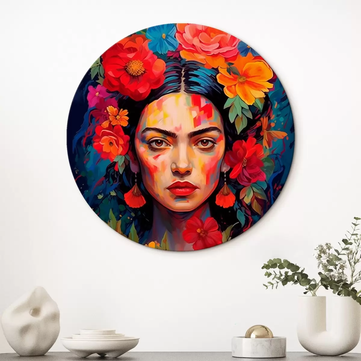 Runde Wandbilder Frau Porträt mit floralen Rahmen in hellen abstrakten Stil Nr r42653