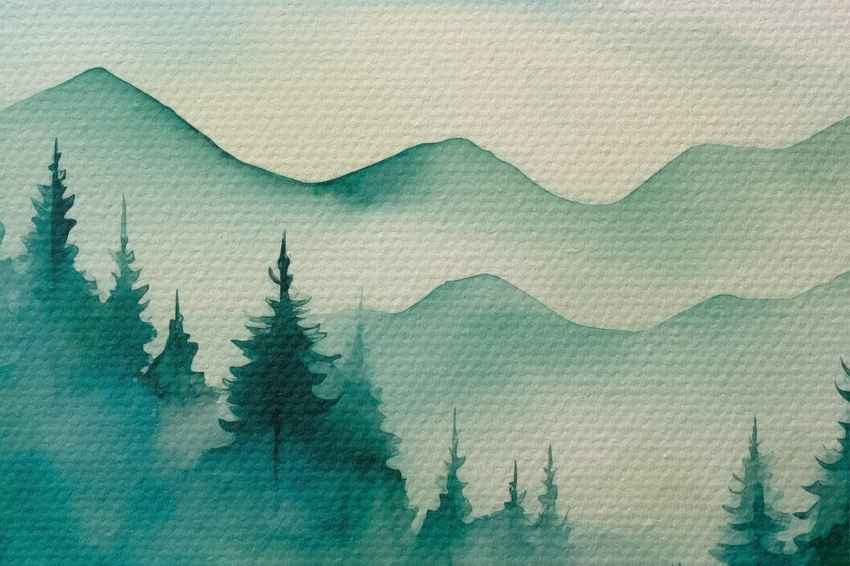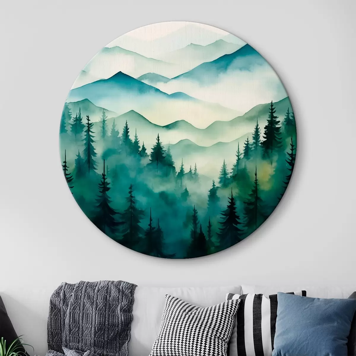 Runde Wandbilder Neblige Landschaft mit Bergen und Wald Nr r42662