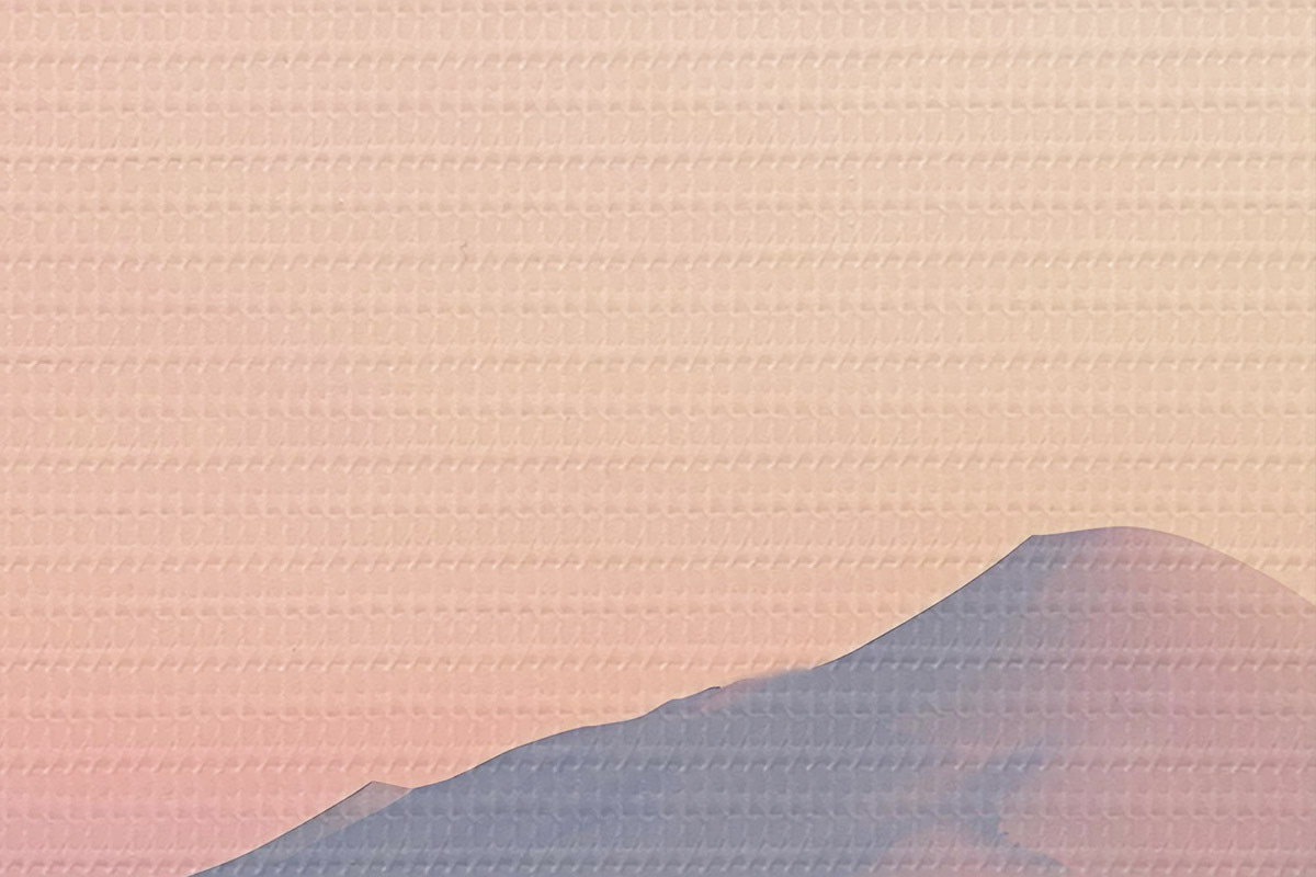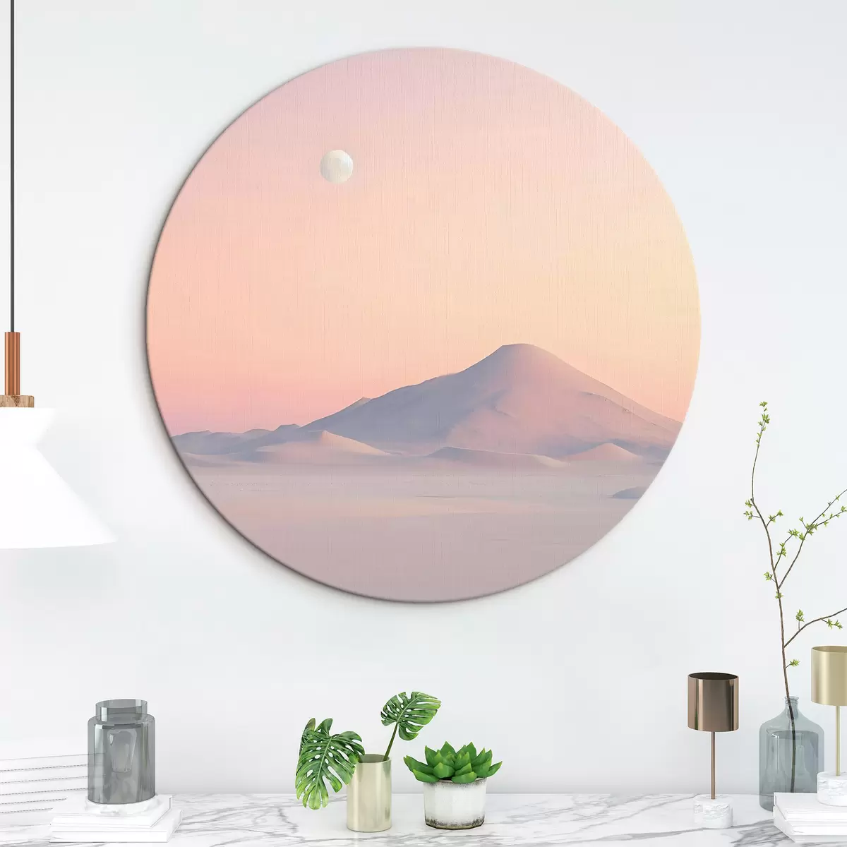 Runde Wandbilder Ein großer Berg mit einem sanften Abhang in sanften Pastellfarben mit einem blassen Mond am Himmel Nr r42718