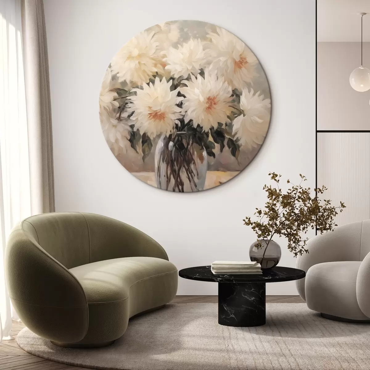 Runde Wandbilder Chrysanthemen in einer Vase Nachahmung der Malerei Nr r42744