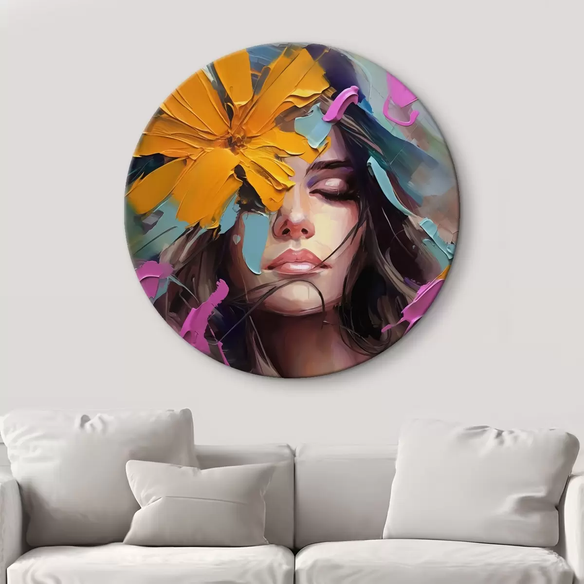 Runde Wandbilder Abstraktes Porträt eines Mädchens mit einer Blume Nr r42748
