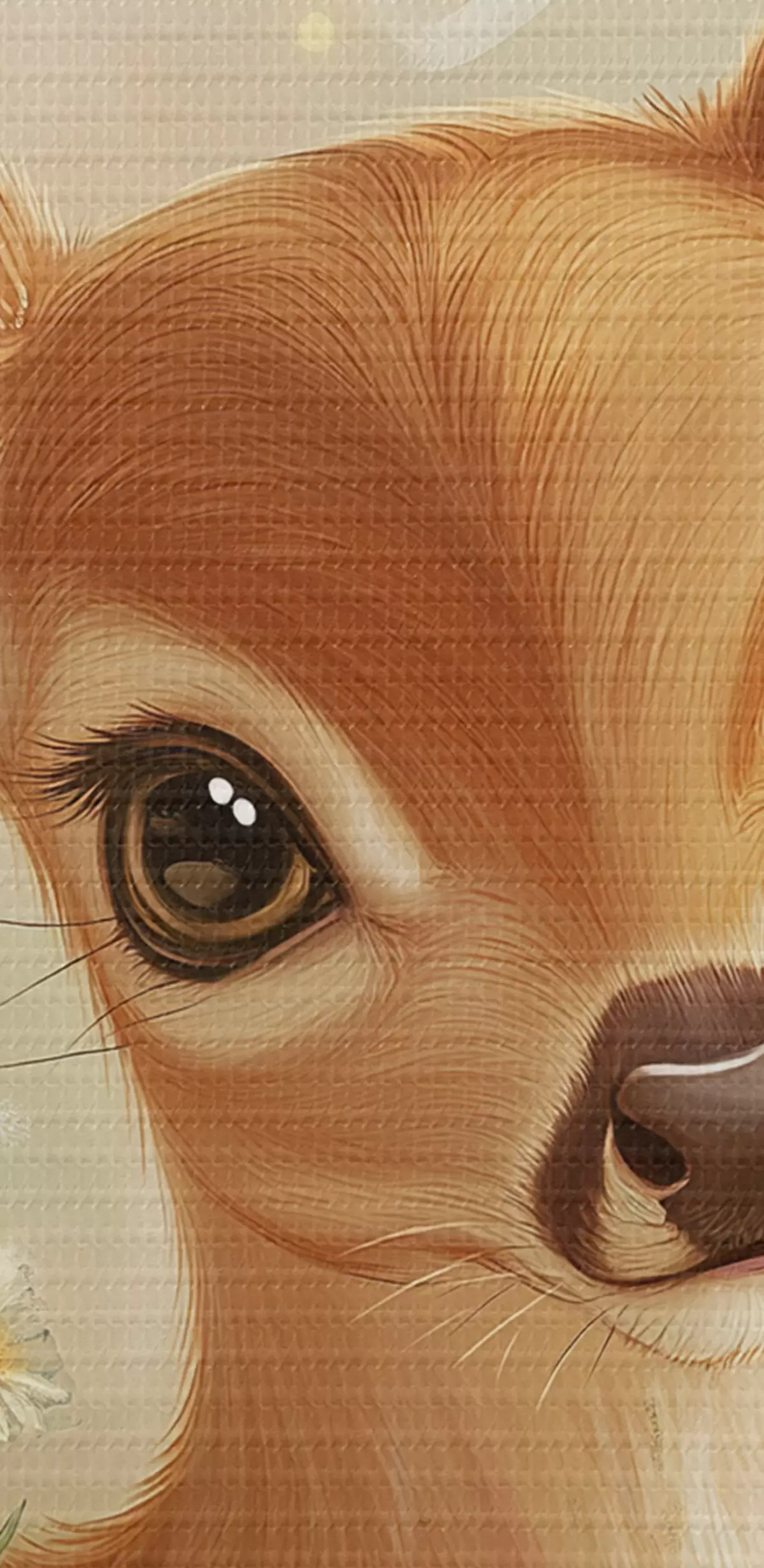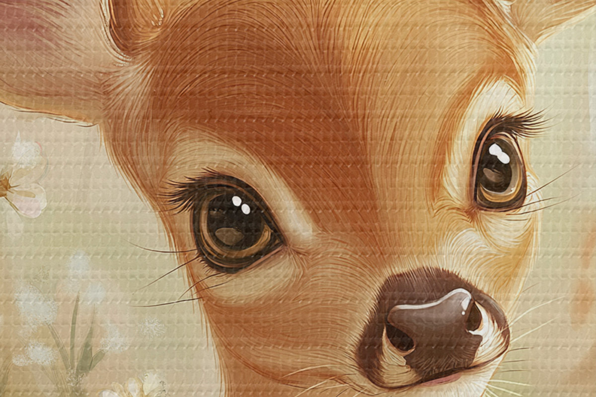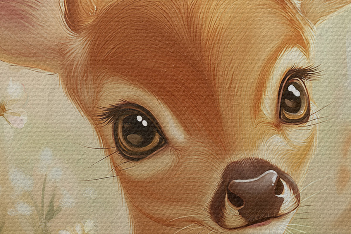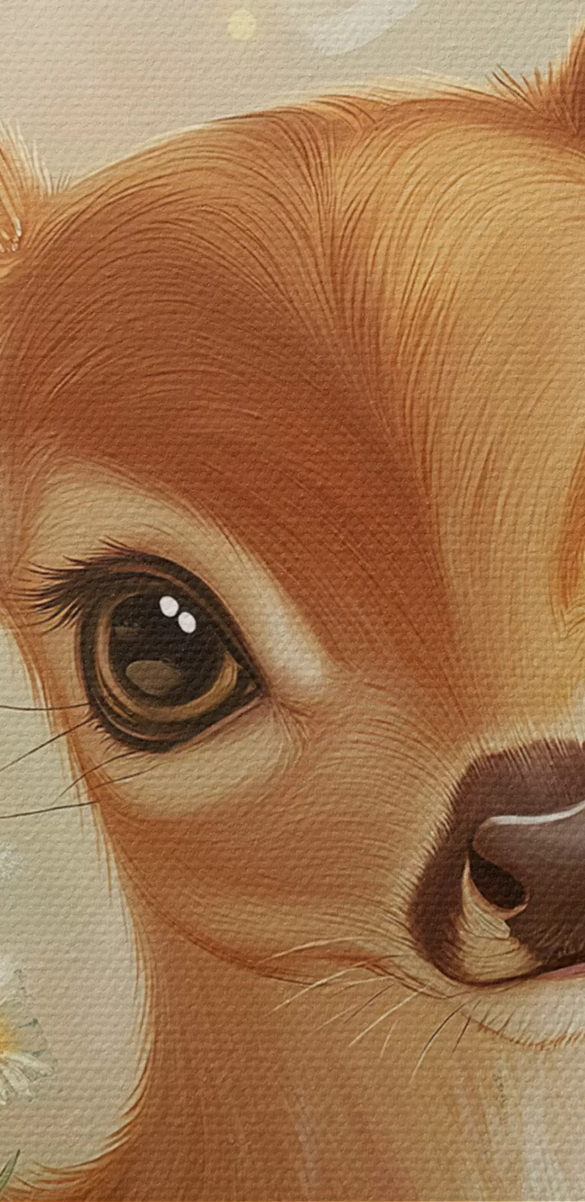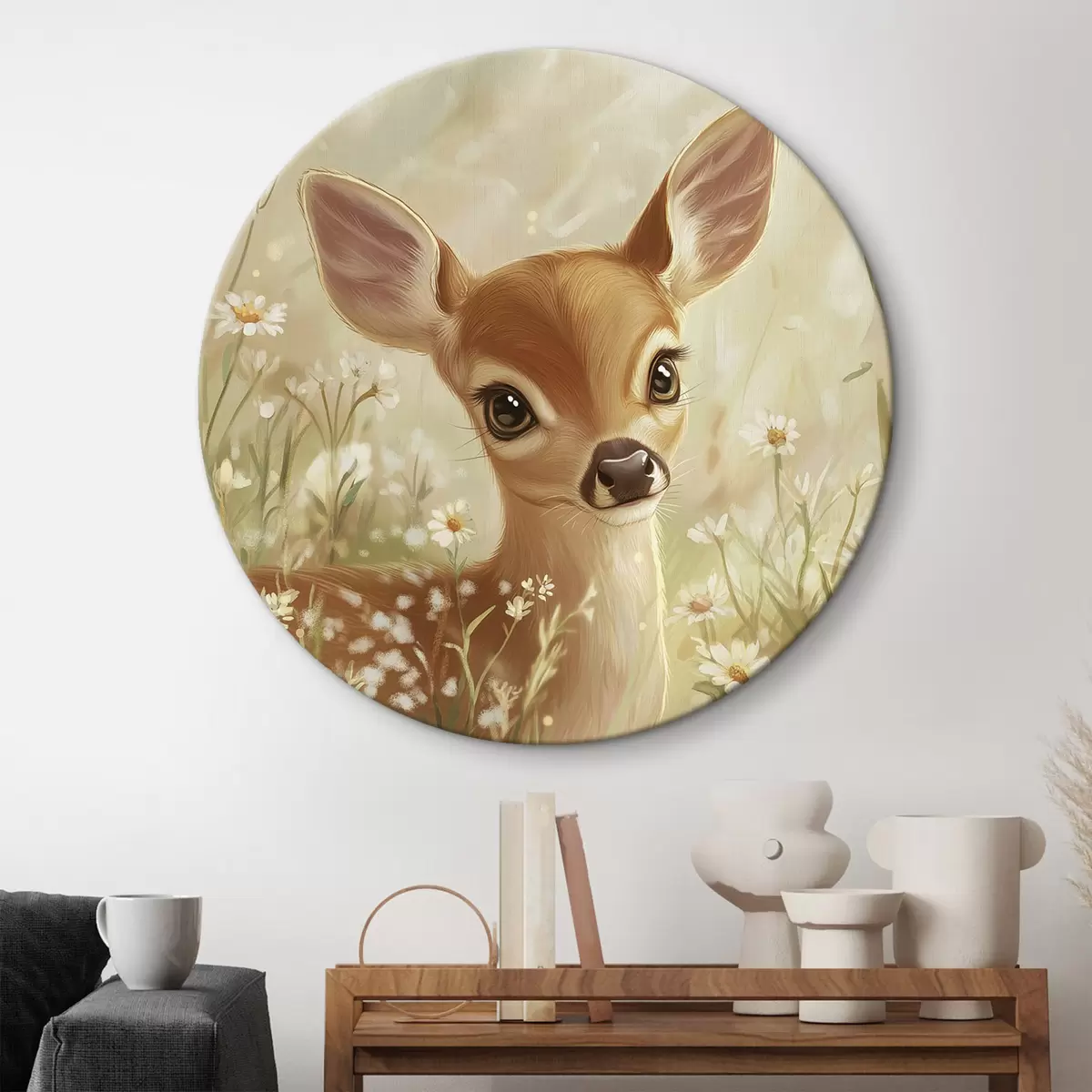 Runde Wandbilder Niedliches Reh auf der Wiese mit Gänseblümchen, Zeichnung in Öl Nr r42780