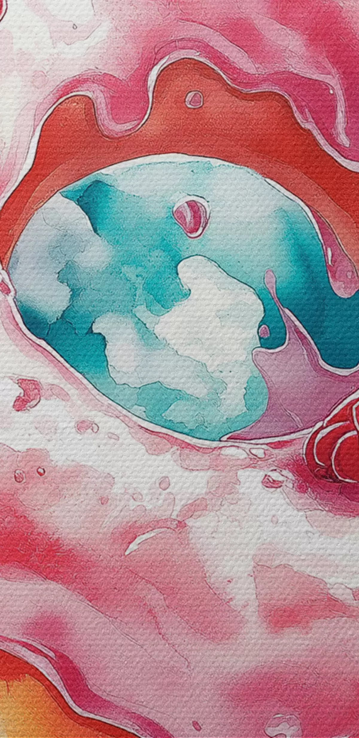 Runde Wandbilder Aquarell-Donut mit Himbeeren, rosa und blauen Farben r42787