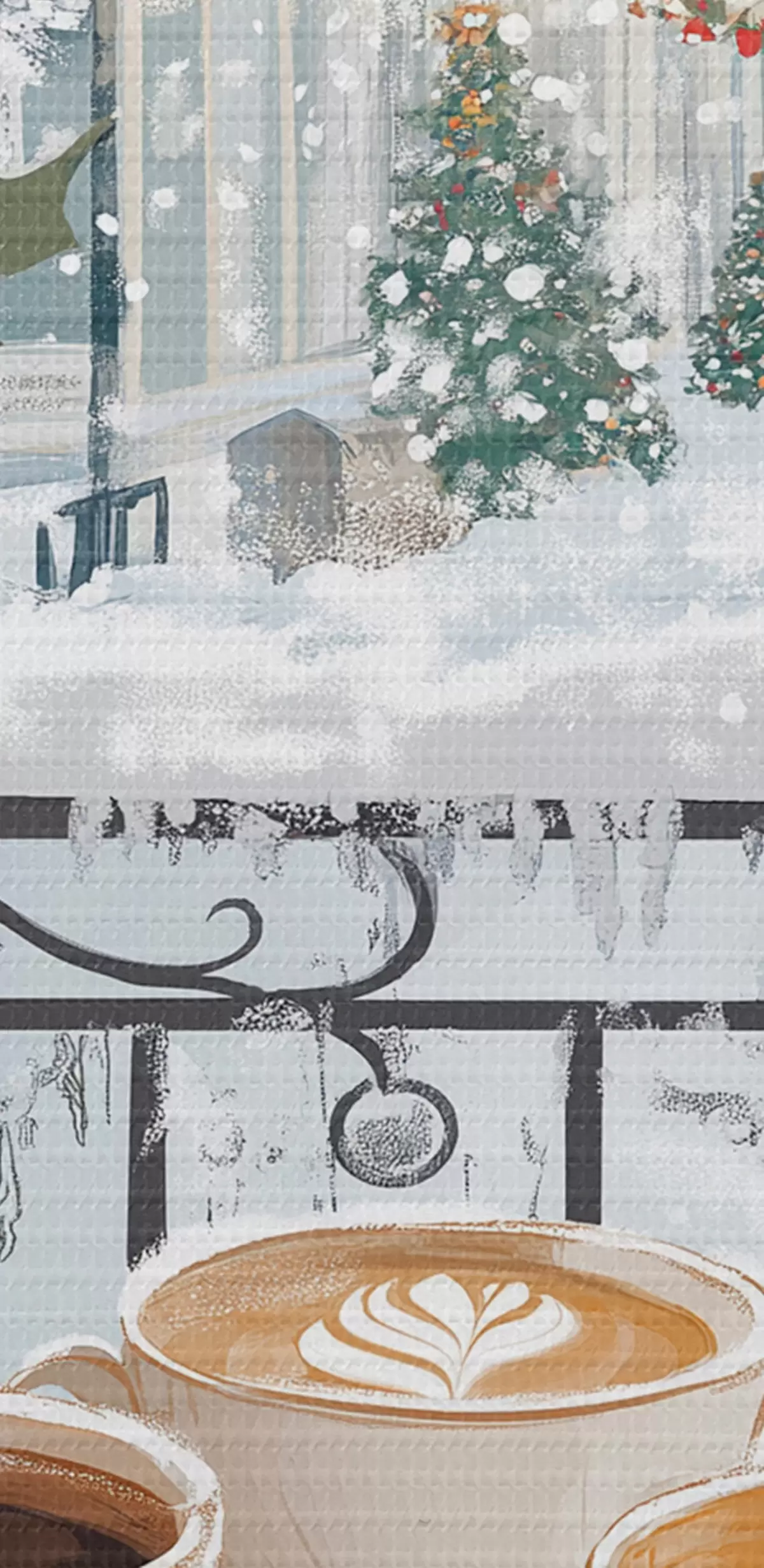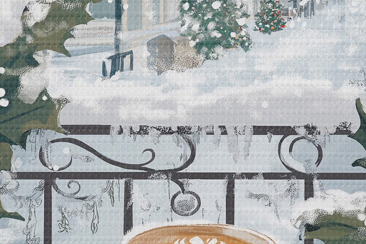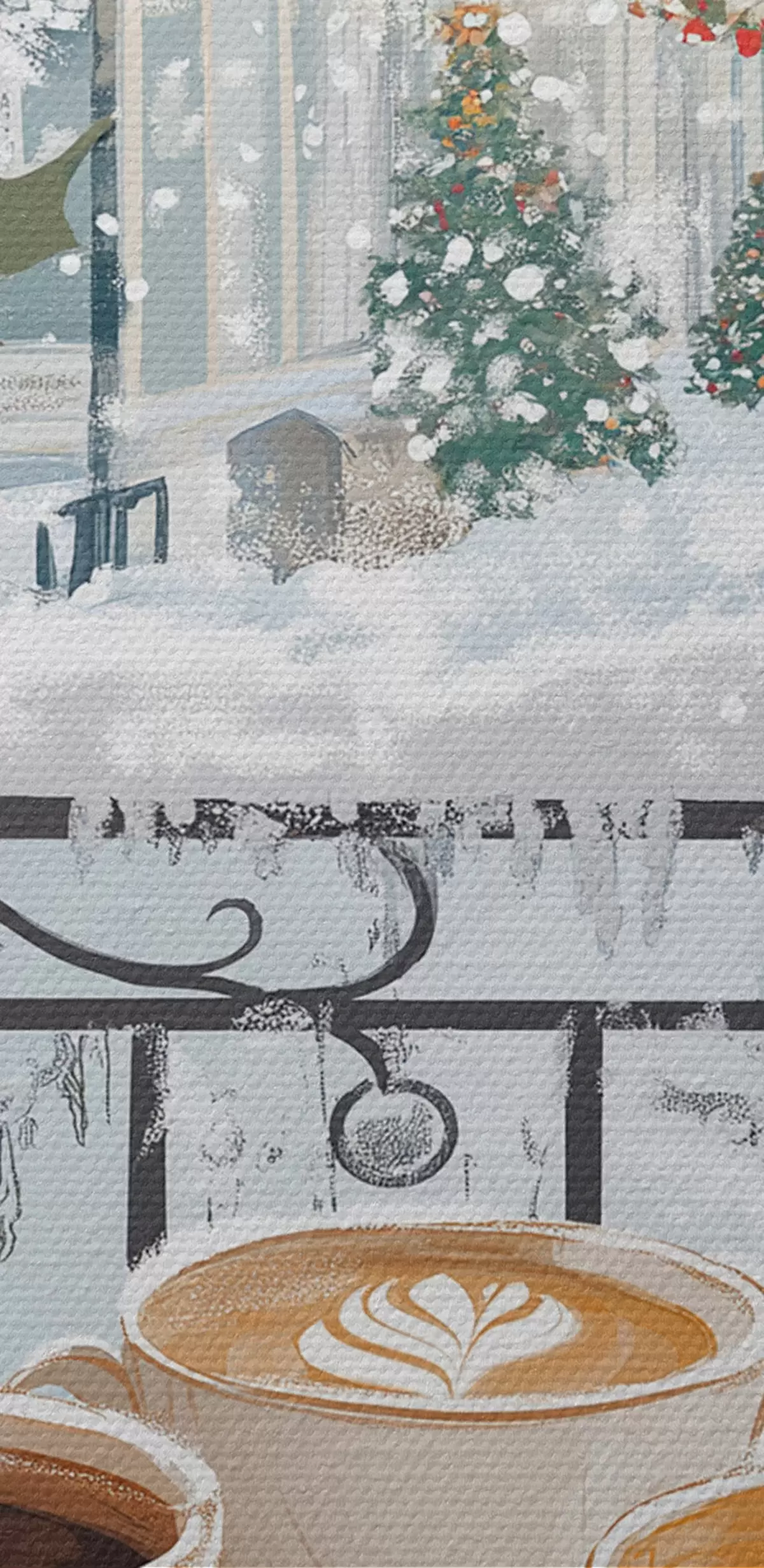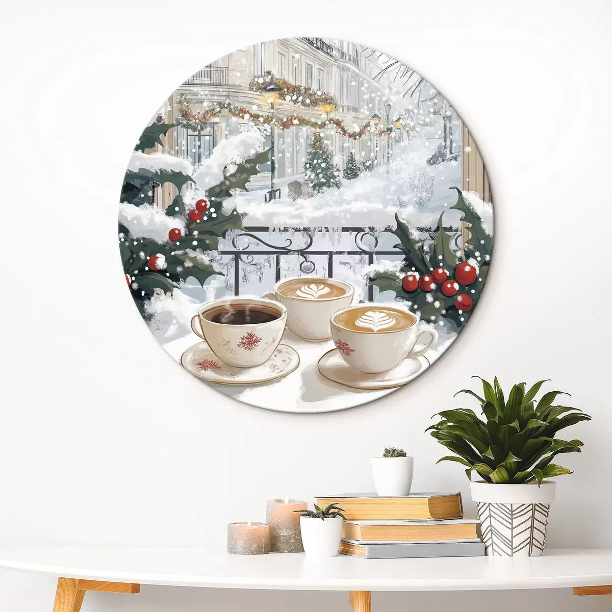 Runde Wandbilder Winterästhetik, Tassen Kaffee, Restaurant, Stadtstraße r42794
