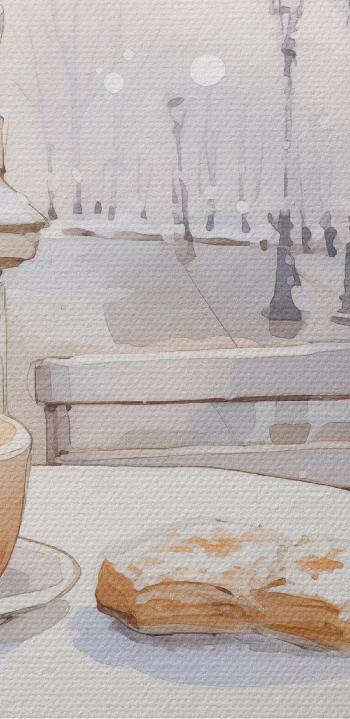 Runde Wandbilder Ästhetisches Straßencafé, Frankreich, frische Bäckerei, Zeichnung im Aquarellstil r42798