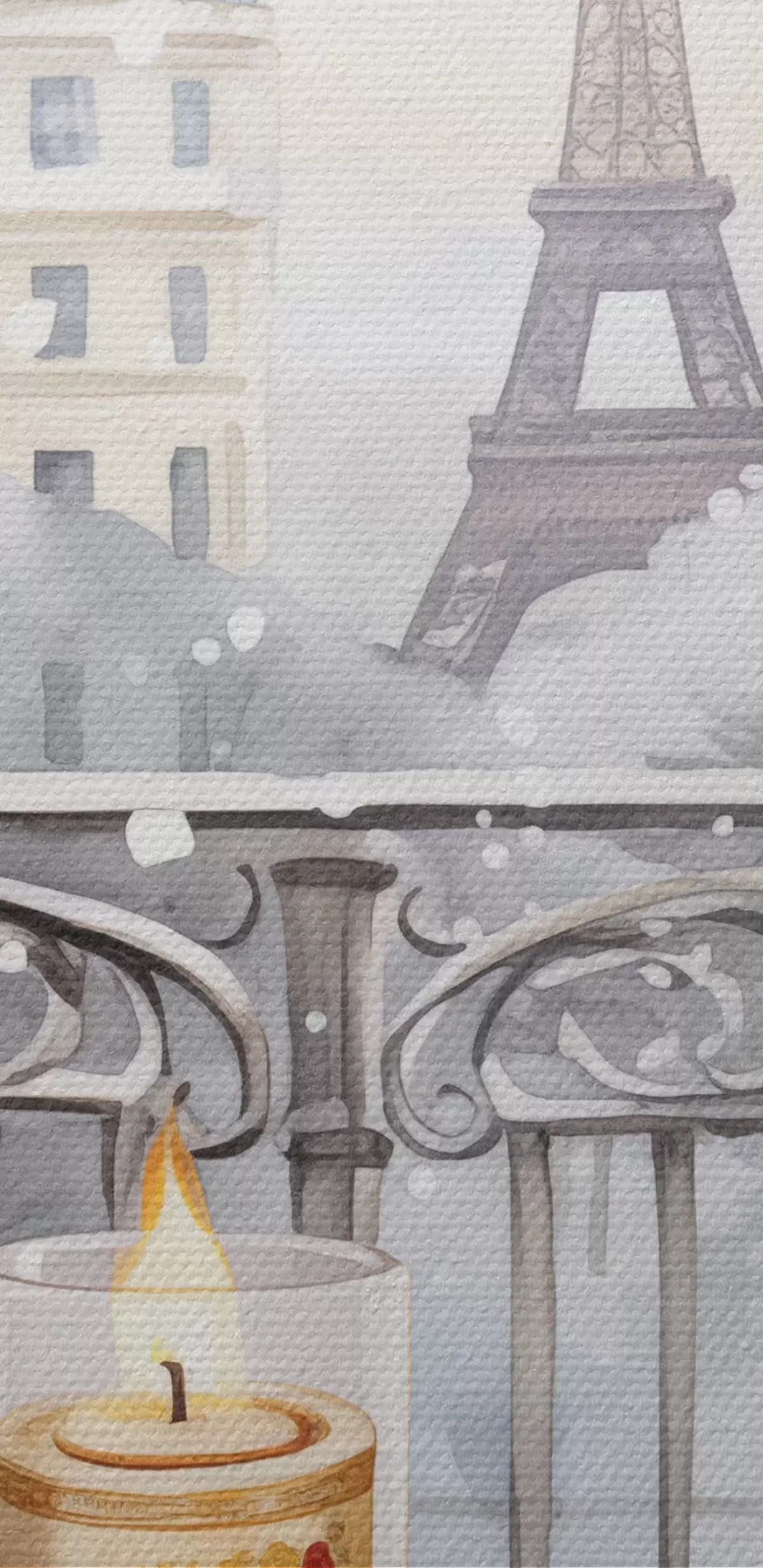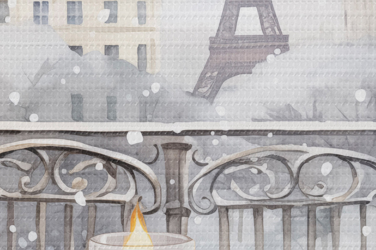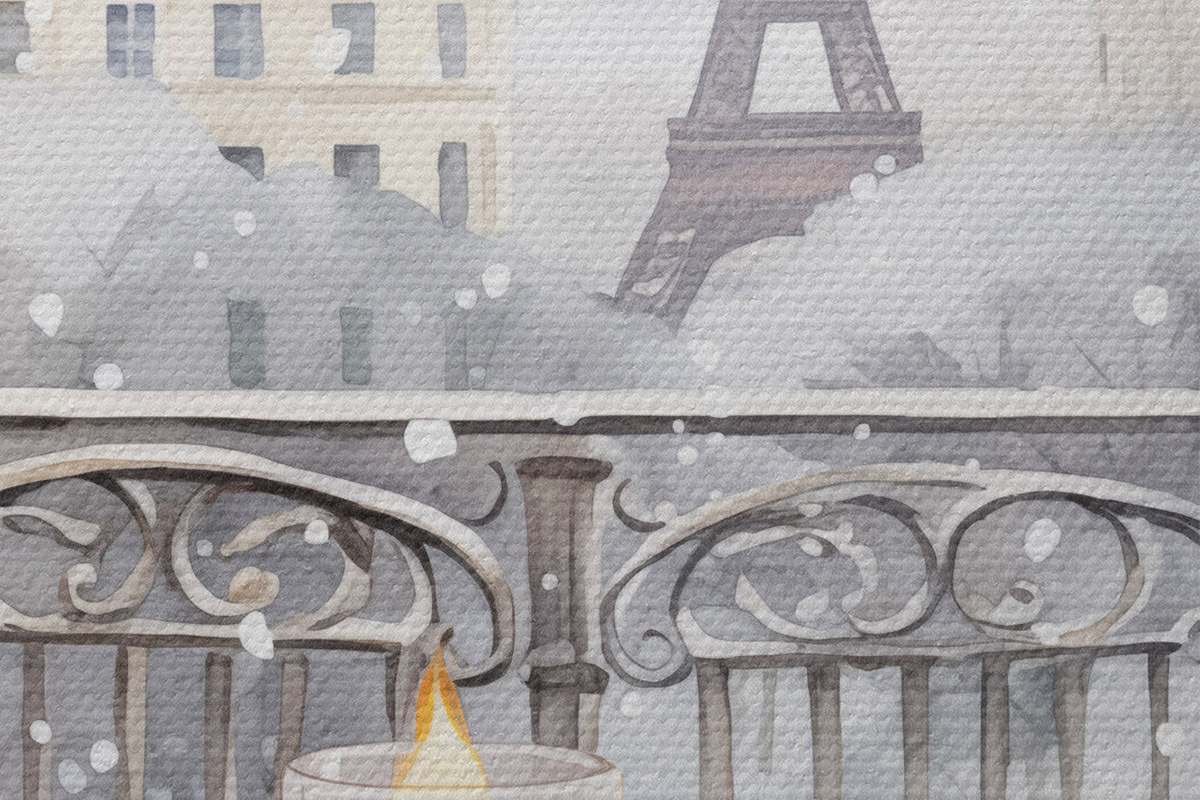 Runde Wandbilder Schönes Café in Paris, Teetassen, romantische Aussicht, Winter, Aquarellstil r42799