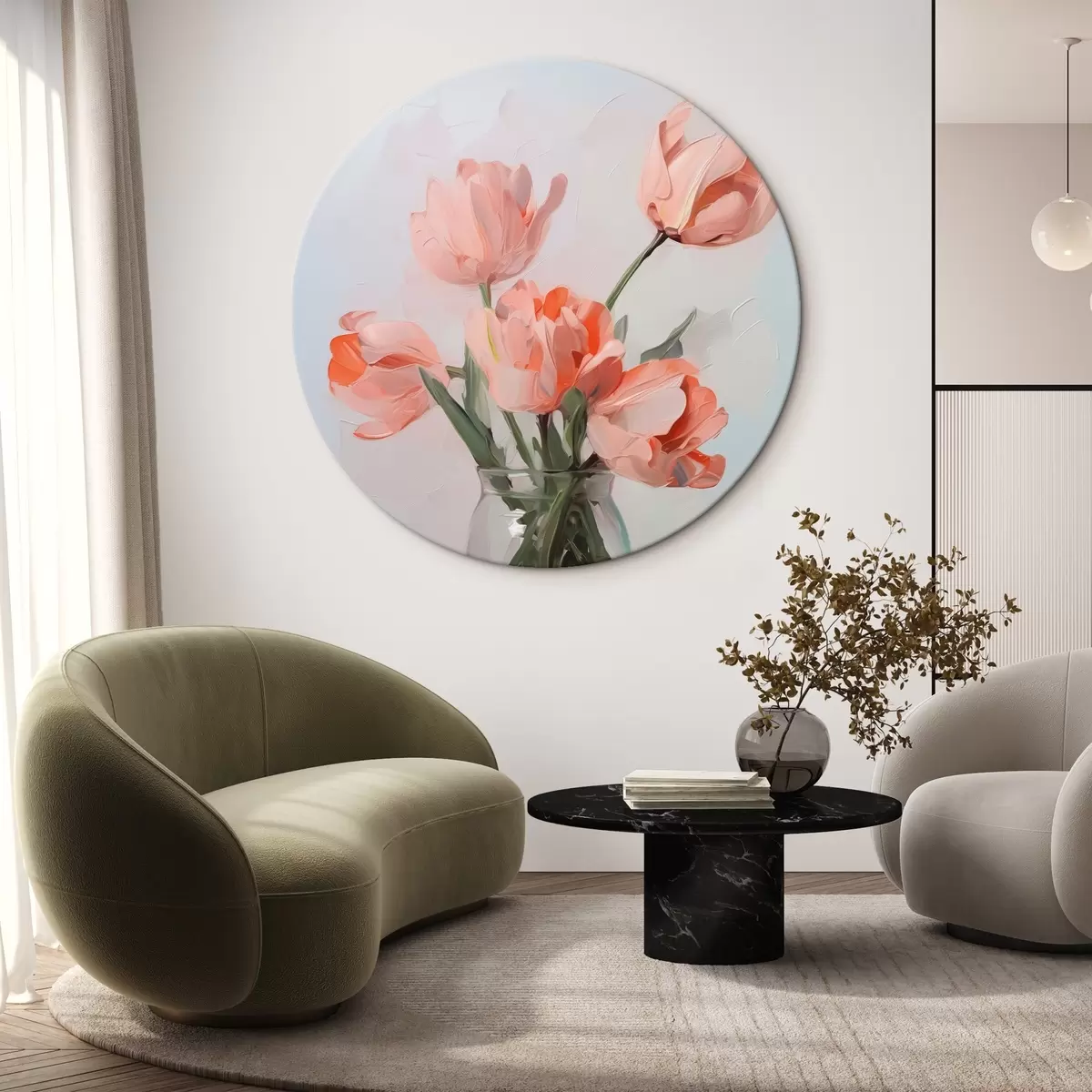 Runde Wandbilder Tulpen in einer Vase Nachahmung Gemälde r42836