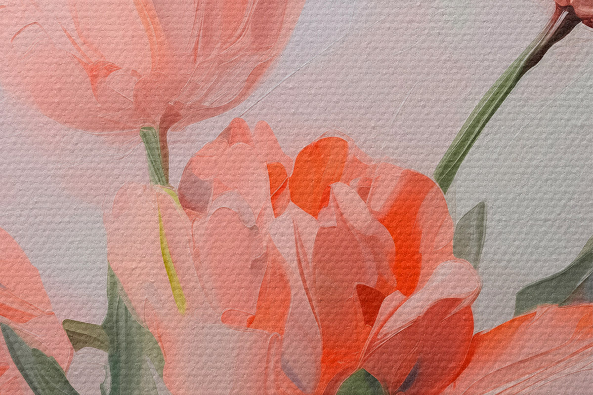 Drei Materialtypen stehen zur Verfügung: Economic Canvas - ein dichtes und haltbares Material für den Digitaldruck, identisch mit Malerleinwand, wasserfeste Oberfläche, realistische Wiedergabe von Details, mittelkörniges Material. Premium Canvas - die Textur ähnelt der einer Malerleinwand (verwobene kleine Fäden). Weiche, detaillierte Wiedergabe des Bildes auf einer matten Oberfläche. Eco-Premium - hochwertiges Gewebe aus 100% Baumwolle. Dank der natürlichen Baumwollfasern ist das Material langlebig und verschleißfest. Hervorragende Farbwiedergabe und Detailtreue.