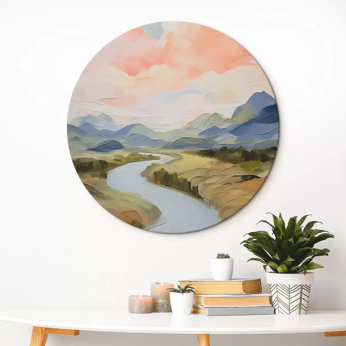 Runde Wandbilder Fluss im Tal Landschaft Nachahmung der Malerei r42844