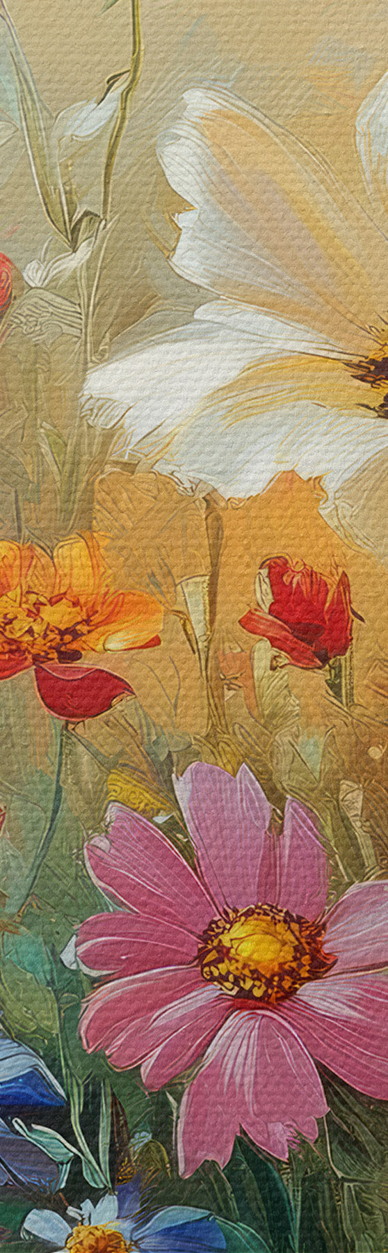 Drei Materialtypen stehen zur Verfügung: Economic Canvas - ein dichtes und haltbares Material für den Digitaldruck, identisch mit Malerleinwand, wasserfeste Oberfläche, realistische Wiedergabe von Details, mittelkörniges Material. Premium Canvas - die Textur ähnelt der einer Malerleinwand (verwobene kleine Fäden). Weiche, detaillierte Wiedergabe des Bildes auf einer matten Oberfläche. Eco-Premium - hochwertiges Gewebe aus 100% Baumwolle. Dank der natürlichen Baumwollfasern ist das Material langlebig und verschleißfest. Hervorragende Farbwiedergabe und Detailtreue.
