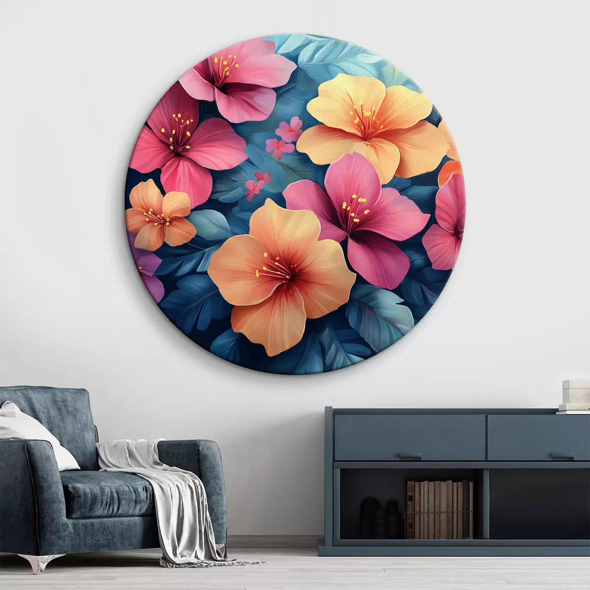 Runde Wandbilder Orange und rosa große Blüten r42853