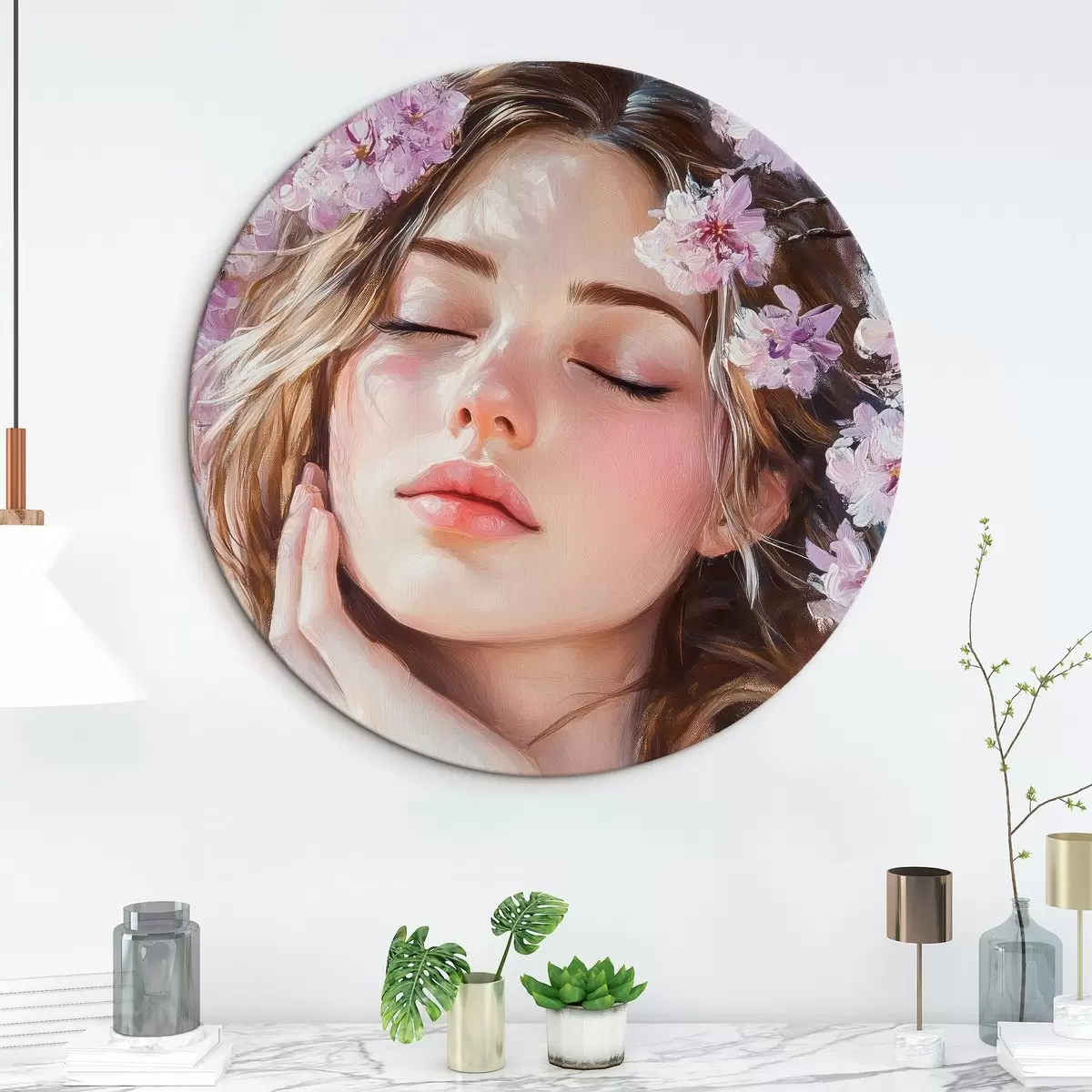 Runde Wandbilder Mädchen in der Nähe eines blühenden Zweigs Nr r42857