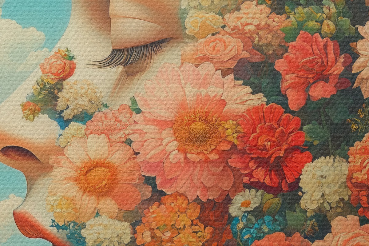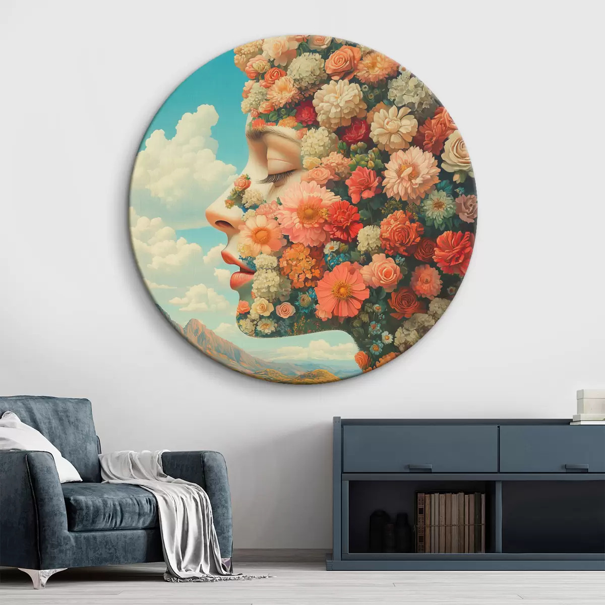 Runde Wandbilder Gesicht im Profil in Blumen r42861