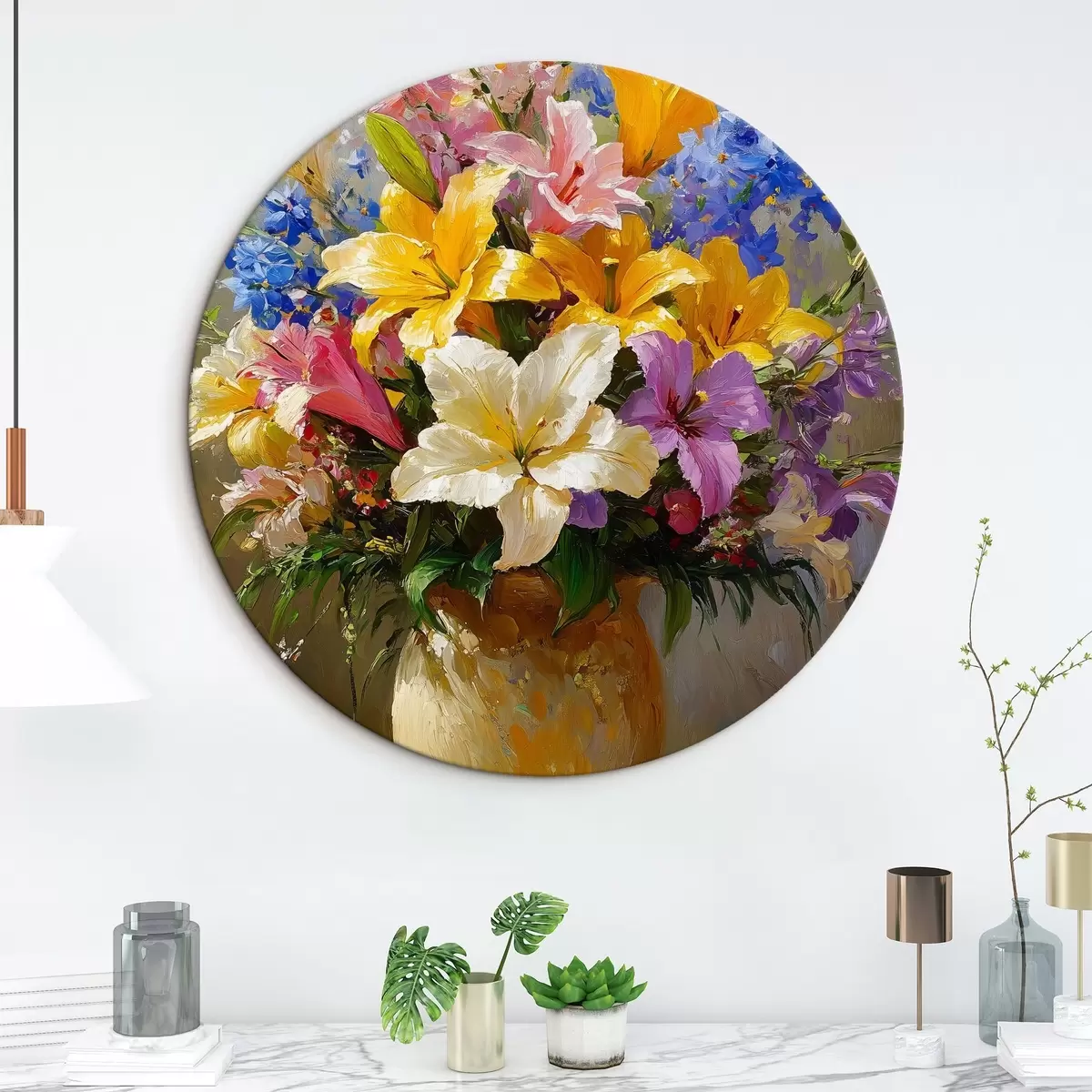 Runde Wandbilder Heller Blumenstrauß im Stil der Ölmalerei Nr r42864