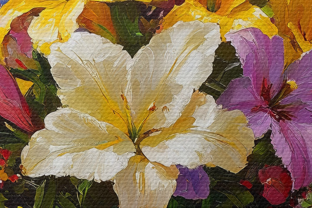 Drei Materialtypen stehen zur Verfügung: Economic Canvas - ein dichtes und haltbares Material für den Digitaldruck, identisch mit Malerleinwand, wasserfeste Oberfläche, realistische Wiedergabe von Details, mittelkörniges Material. Premium Canvas - die Textur ähnelt der einer Malerleinwand (verwobene kleine Fäden). Weiche, detaillierte Wiedergabe des Bildes auf einer matten Oberfläche. Eco-Premium - hochwertiges Gewebe aus 100% Baumwolle. Dank der natürlichen Baumwollfasern ist das Material langlebig und verschleißfest. Hervorragende Farbwiedergabe und Detailtreue.