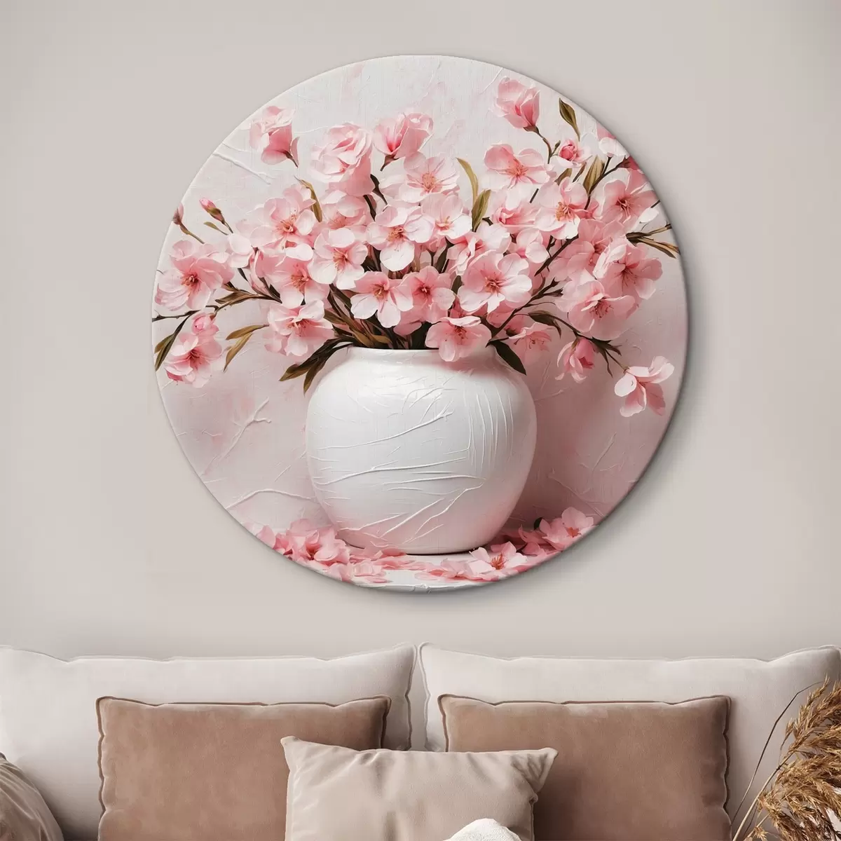 Runde Wandbilder Rosa Blumen in weißer Vase r42915