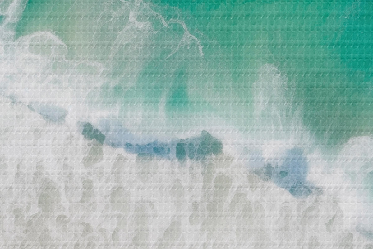 Runde Wandbilder Luftaufnahme eines Küstenstreifens mit türkisfarbenen Wellen, die sanft auf den Sandstrand rollen Nr r42930