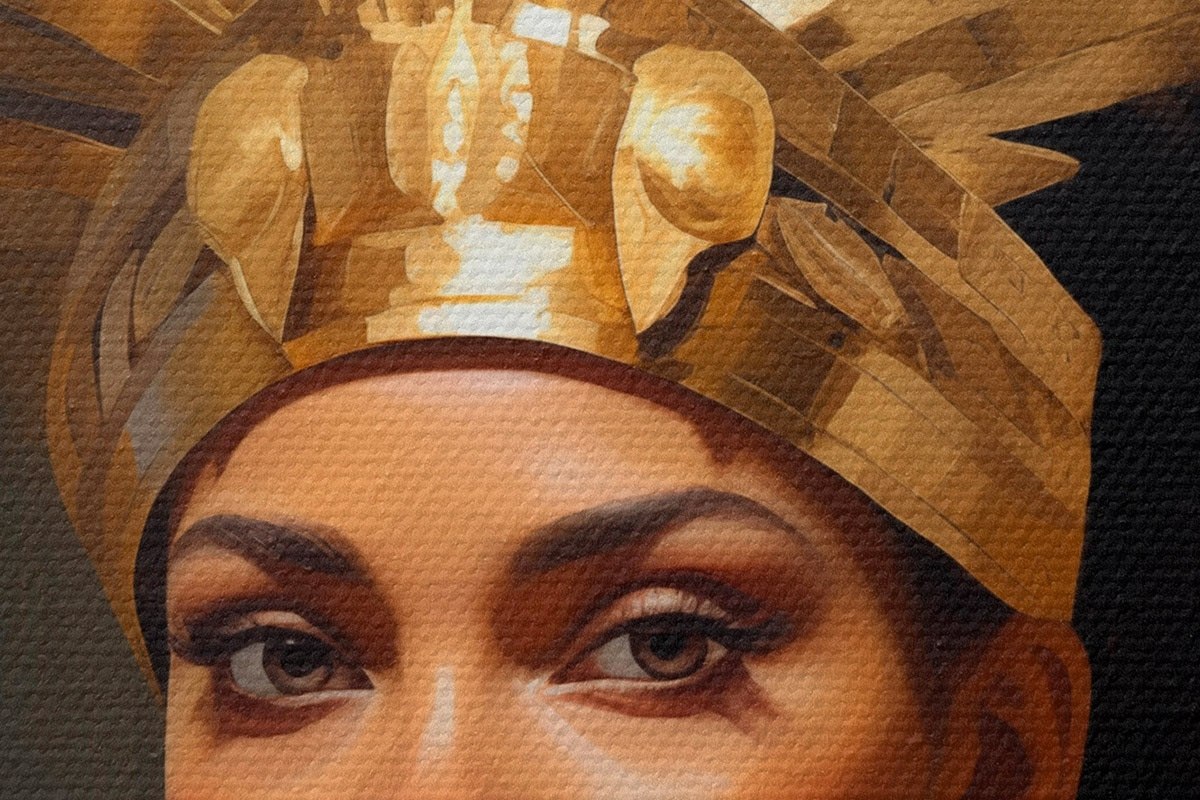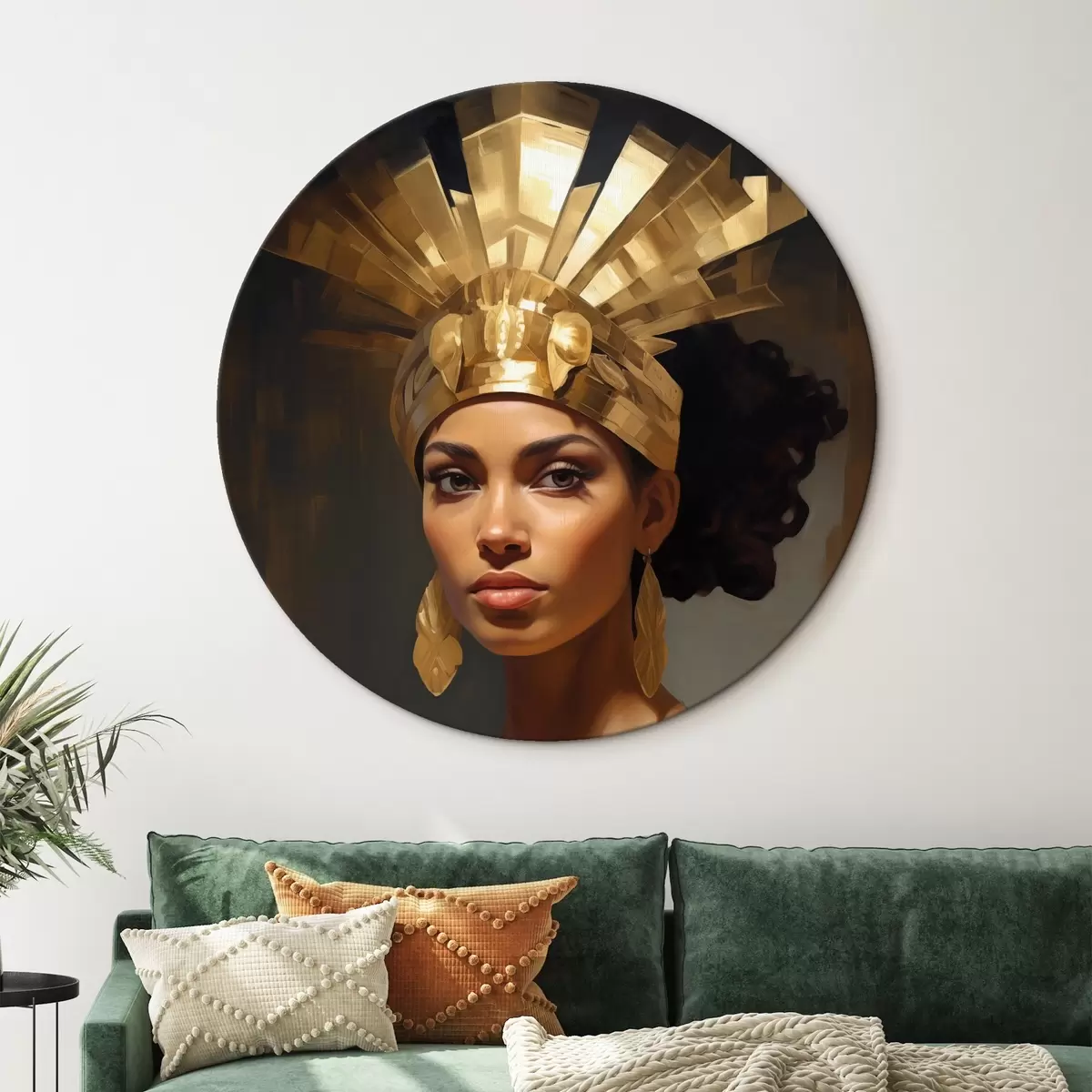Runde Wandbilder Porträt einer Frau mit majestätischem Kopfschmuck und traditionellen Ornamenten r42931