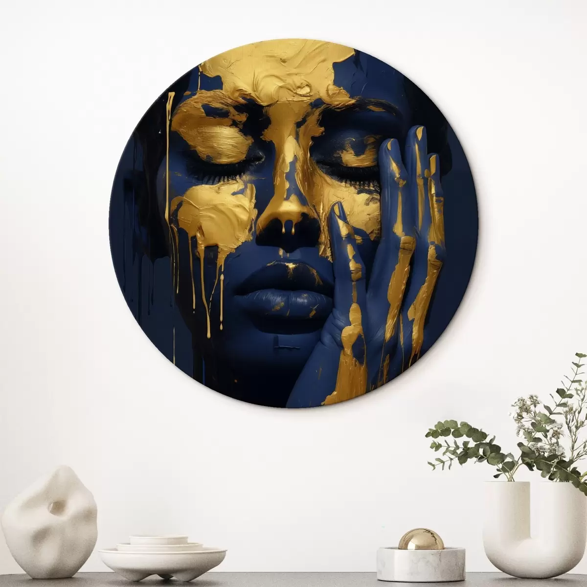 Runde Wandbilder Abstraktes Porträt einer Frau mit tiefdunklen und warmen Tönen, r42933
