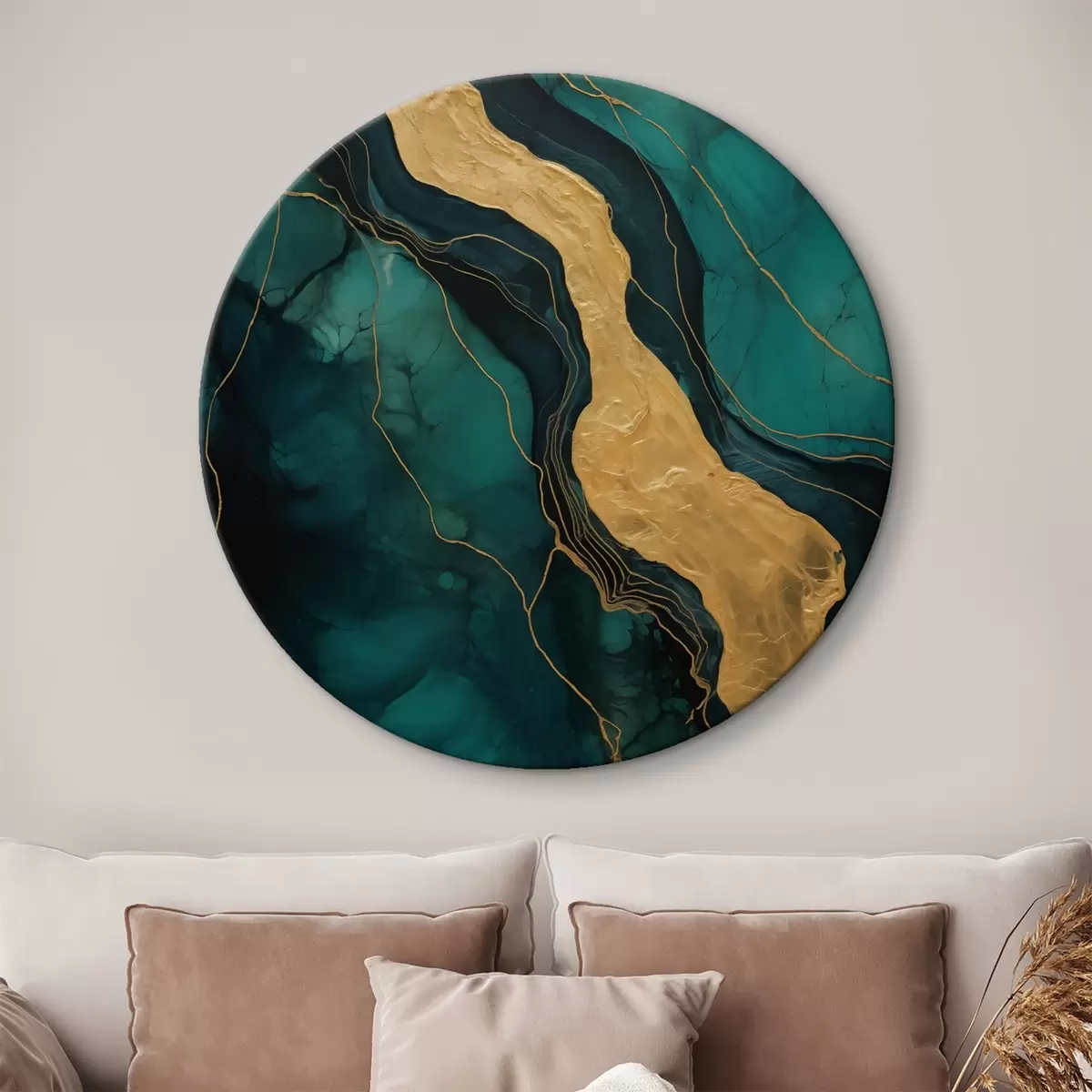 Runde Wandbilder Аbstract pattern mit tiefen Grüntönen und einem warmen Kontrastelement Nr r42934