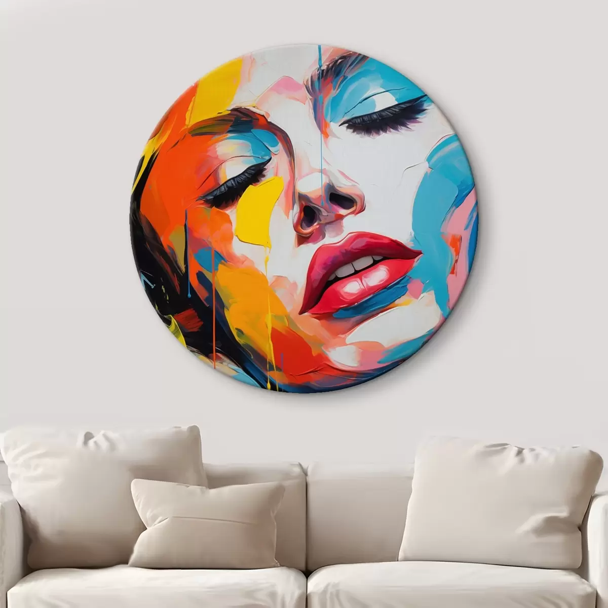 Runde Wandbilder Abstraktes Porträt einer Frau in ausdrucksstarken Farben Nr r42935