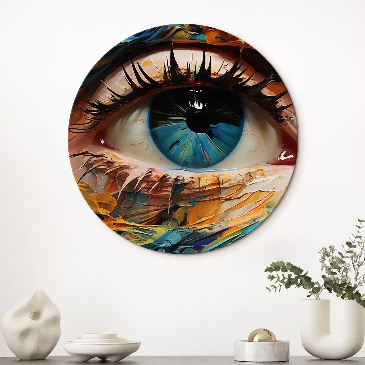 Runde Wandbilder Abstraktes Porträt eines Auges in leuchtenden Farben, mit einem strukturierten Malerei-Effekt Nr r42938
