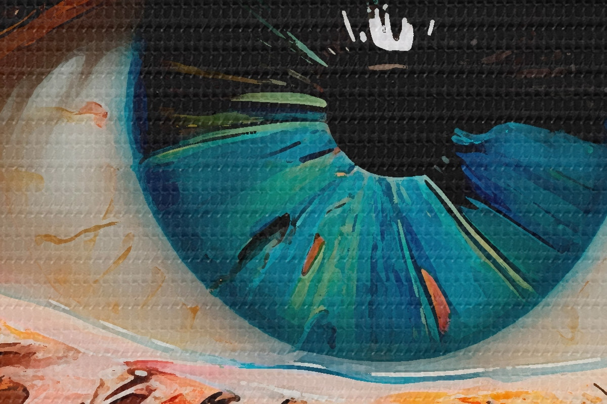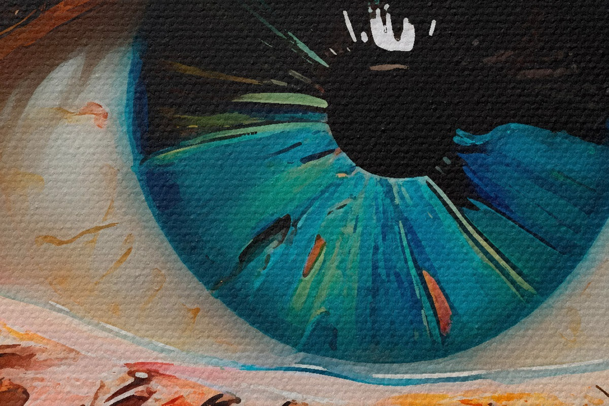 Runde Wandbilder Abstraktes Porträt eines Auges in leuchtenden Farben, mit einem strukturierten Malerei-Effekt r42938