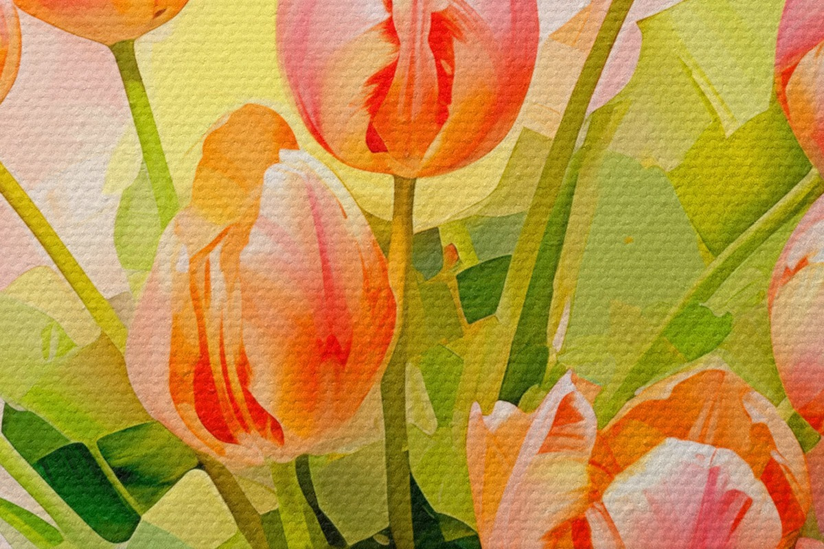 Drei Materialtypen stehen zur Verfügung: Economic Canvas - ein dichtes und haltbares Material für den Digitaldruck, identisch mit Malerleinwand, wasserfeste Oberfläche, realistische Wiedergabe von Details, mittelkörniges Material. Premium Canvas - die Textur ähnelt der einer Malerleinwand (verwobene kleine Fäden). Weiche, detaillierte Wiedergabe des Bildes auf einer matten Oberfläche. Eco-Premium - hochwertiges Gewebe aus 100% Baumwolle. Dank der natürlichen Baumwollfasern ist das Material langlebig und verschleißfest. Hervorragende Farbwiedergabe und Detailtreue.
