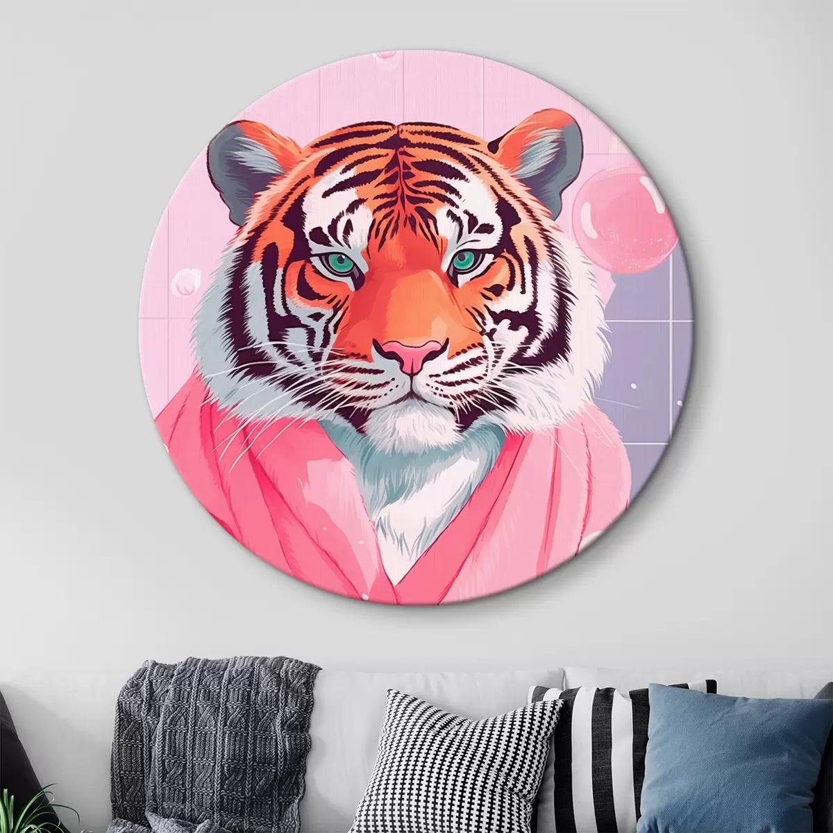 Runde Wandbilder Tiger in einem rosa Handtuch Nr r42942