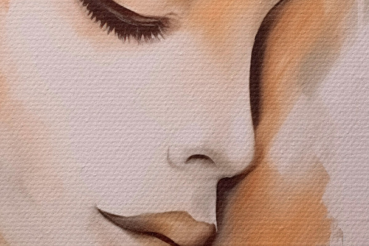 Um die Leinwand auf Keilrahmen zu spannen, ohne das Bild zu beschädigen, verwenden wir ein gespiegeltes Bild.