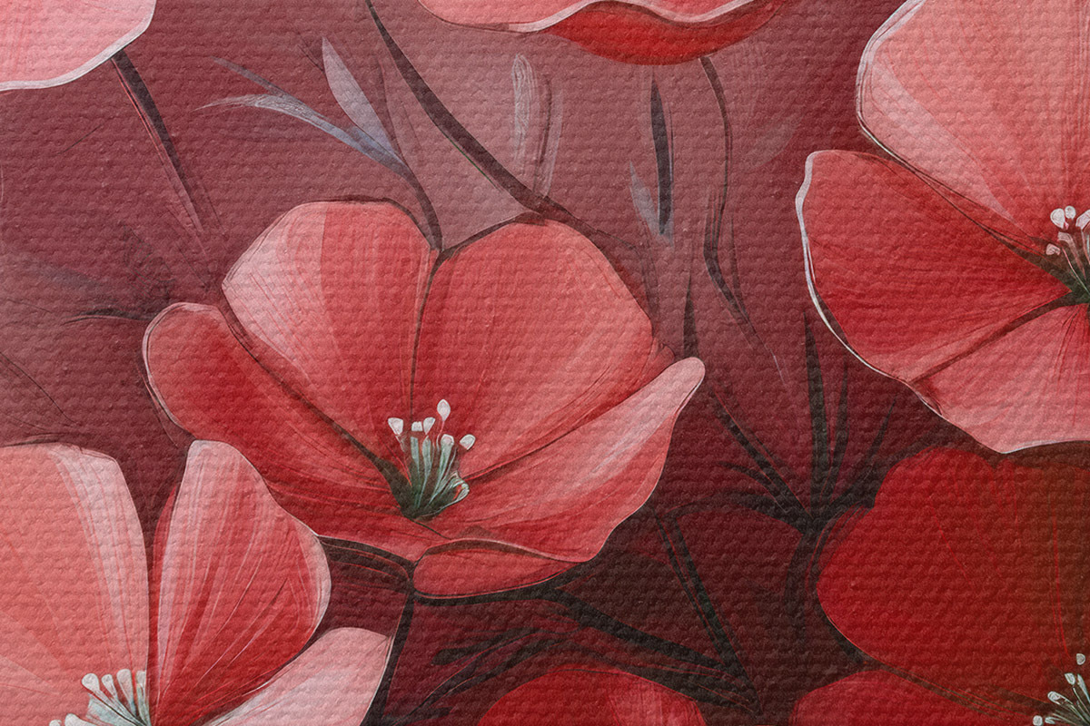 Runde Wandbilder Rote Blumen auf rotem Hintergrund r42970