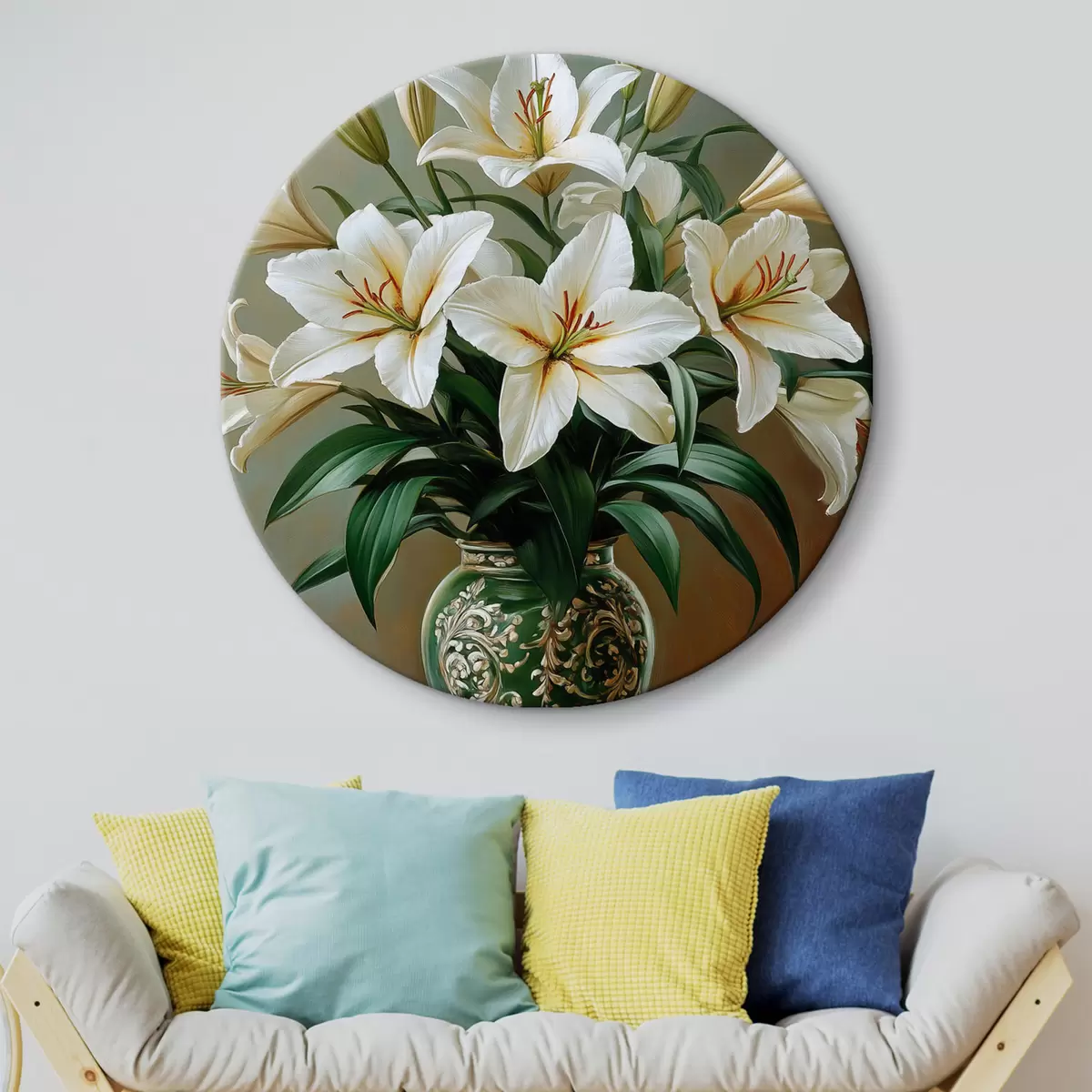 Runde Wandbilder Blumenstrauß aus weißen Lilien in einer Vase r42975