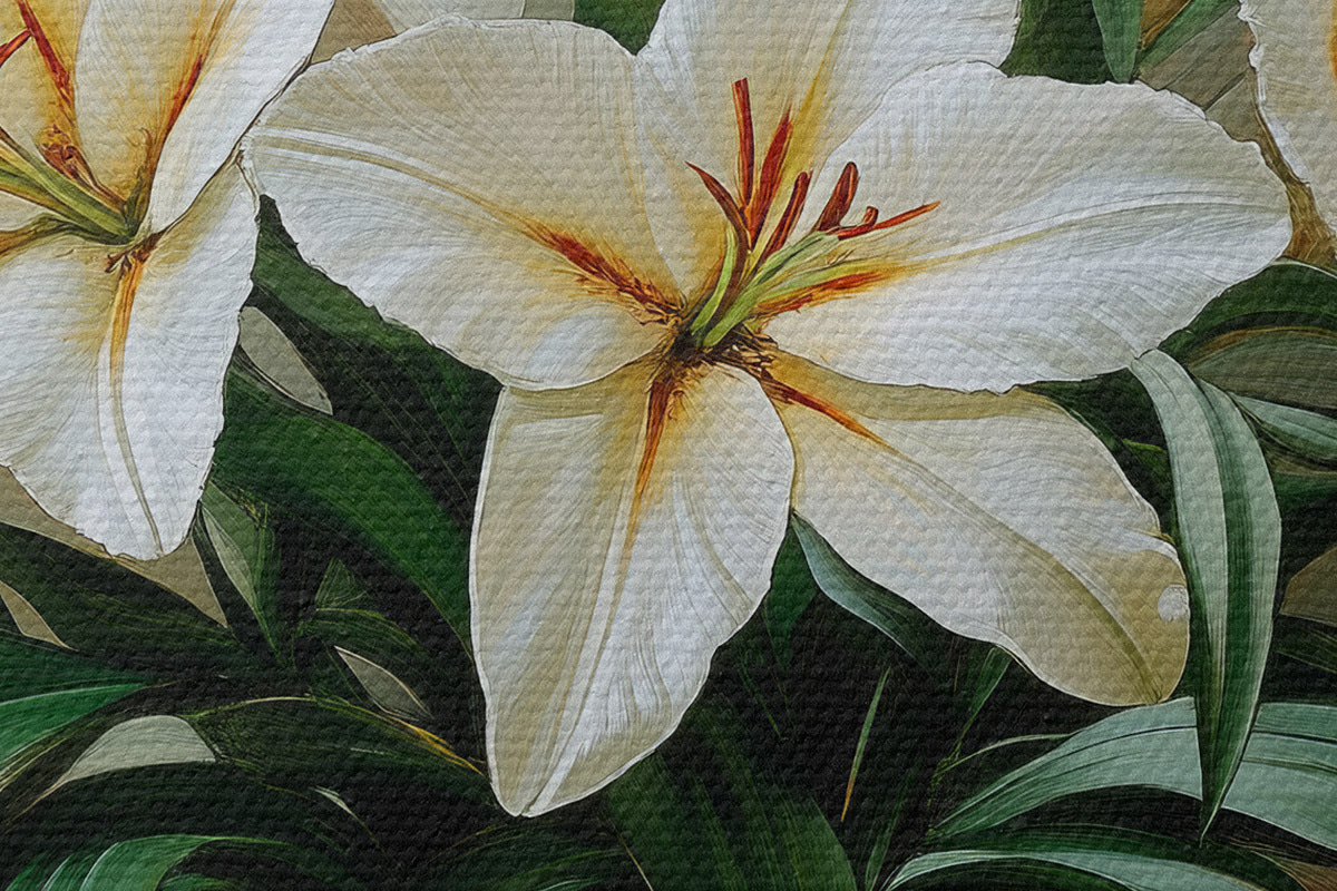 Drei Materialtypen stehen zur Verfügung: Economic Canvas - ein dichtes und haltbares Material für den Digitaldruck, identisch mit Malerleinwand, wasserfeste Oberfläche, realistische Wiedergabe von Details, mittelkörniges Material. Premium Canvas - die Textur ähnelt der einer Malerleinwand (verwobene kleine Fäden). Weiche, detaillierte Wiedergabe des Bildes auf einer matten Oberfläche. Eco-Premium - hochwertiges Gewebe aus 100% Baumwolle. Dank der natürlichen Baumwollfasern ist das Material langlebig und verschleißfest. Hervorragende Farbwiedergabe und Detailtreue.