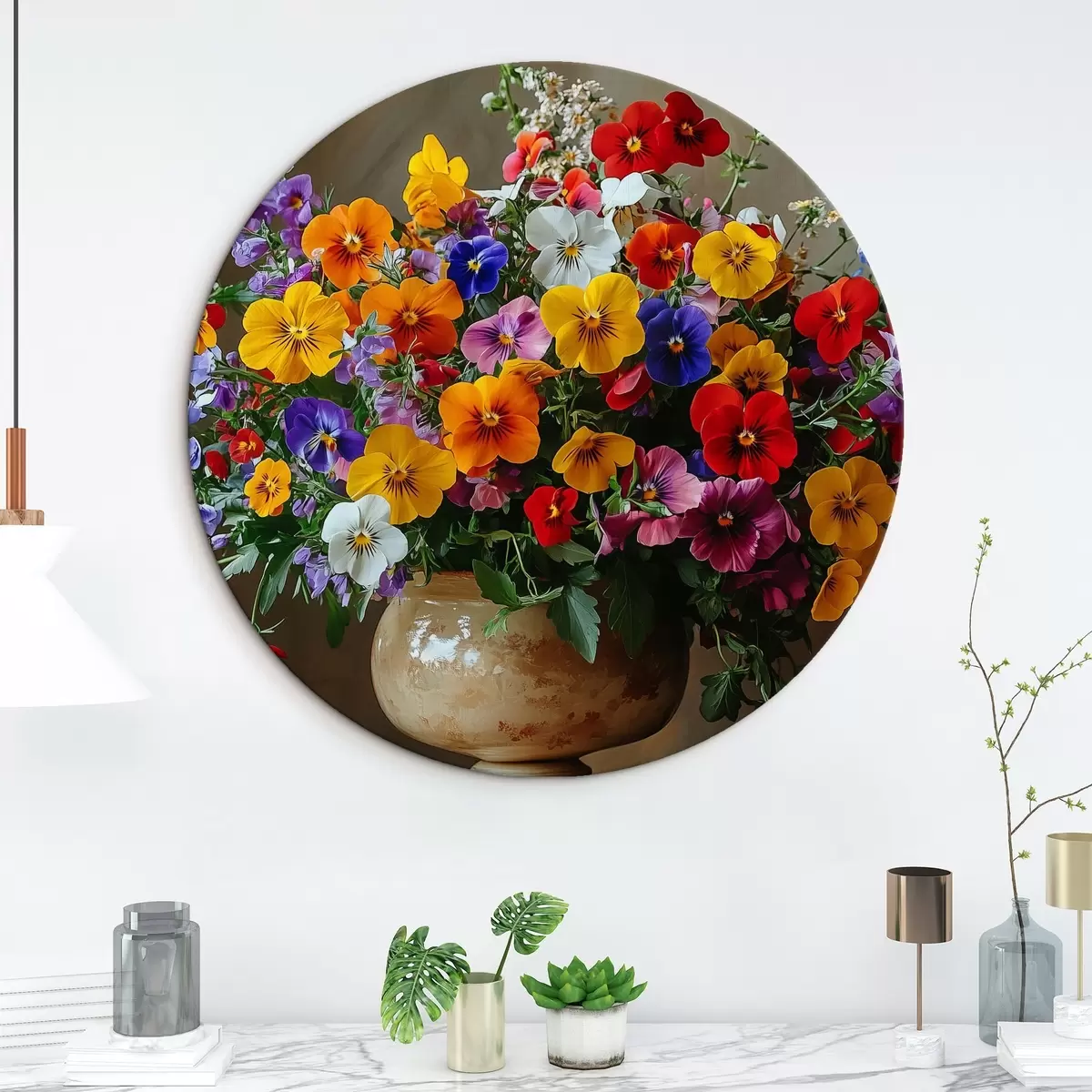 Runde Wandbilder Heller üppiger Blumenstrauß in einer Vase Nr r42976
