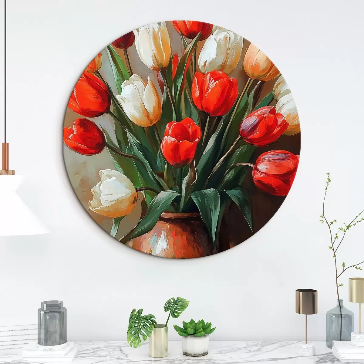 Runde Wandbilder Blumenstrauß aus roten und weißen Tulpen Nr r42981