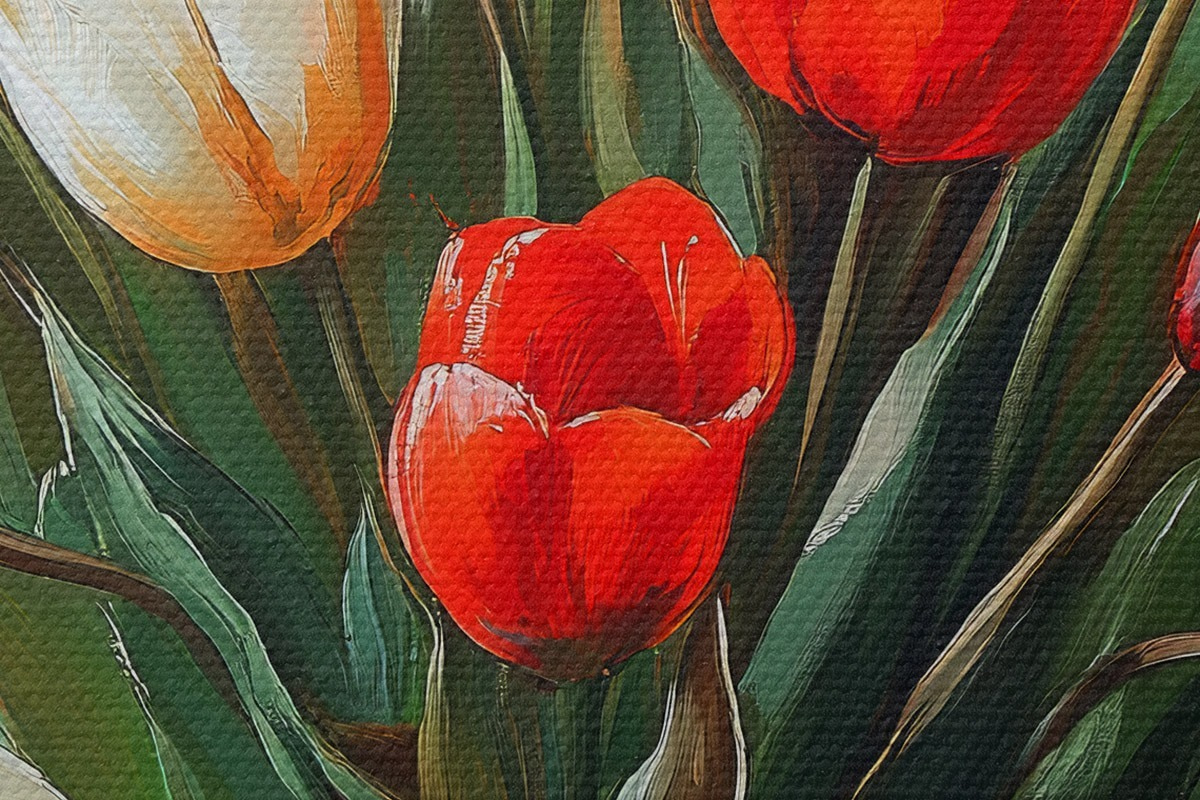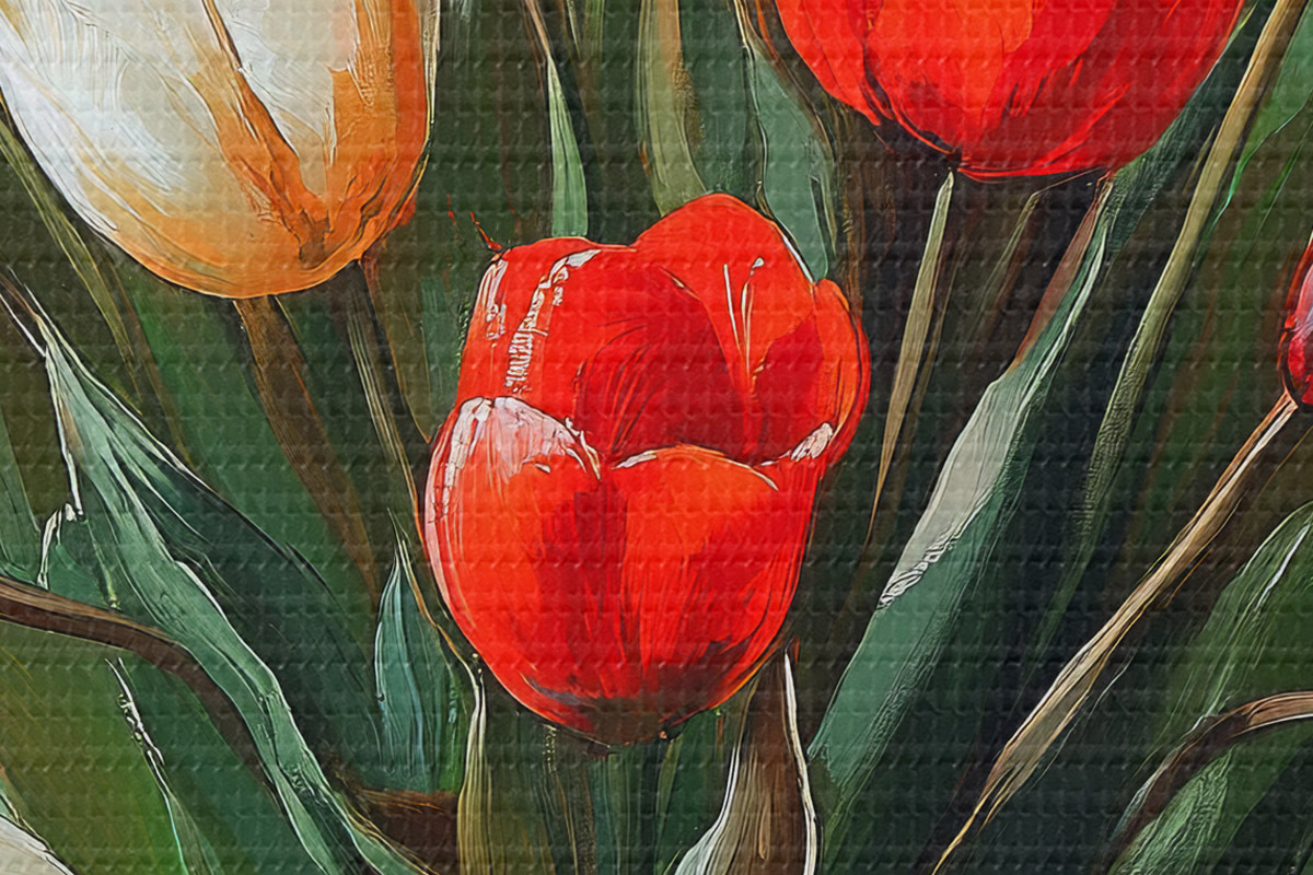 Drei Materialtypen stehen zur Verfügung: Economic Canvas - ein dichtes und haltbares Material für den Digitaldruck, identisch mit Malerleinwand, wasserfeste Oberfläche, realistische Wiedergabe von Details, mittelkörniges Material. Premium Canvas - die Textur ähnelt der einer Malerleinwand (verwobene kleine Fäden). Weiche, detaillierte Wiedergabe des Bildes auf einer matten Oberfläche. Eco-Premium - hochwertiges Gewebe aus 100% Baumwolle. Dank der natürlichen Baumwollfasern ist das Material langlebig und verschleißfest. Hervorragende Farbwiedergabe und Detailtreue.