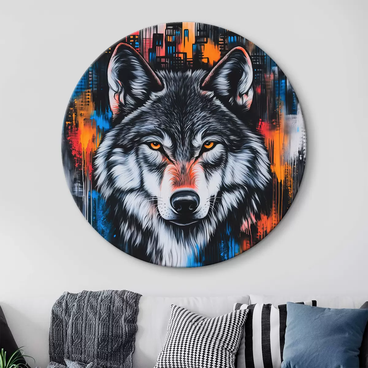 Runde Wandbilder Ein Wolf im Hintergrund der Stadt r42994