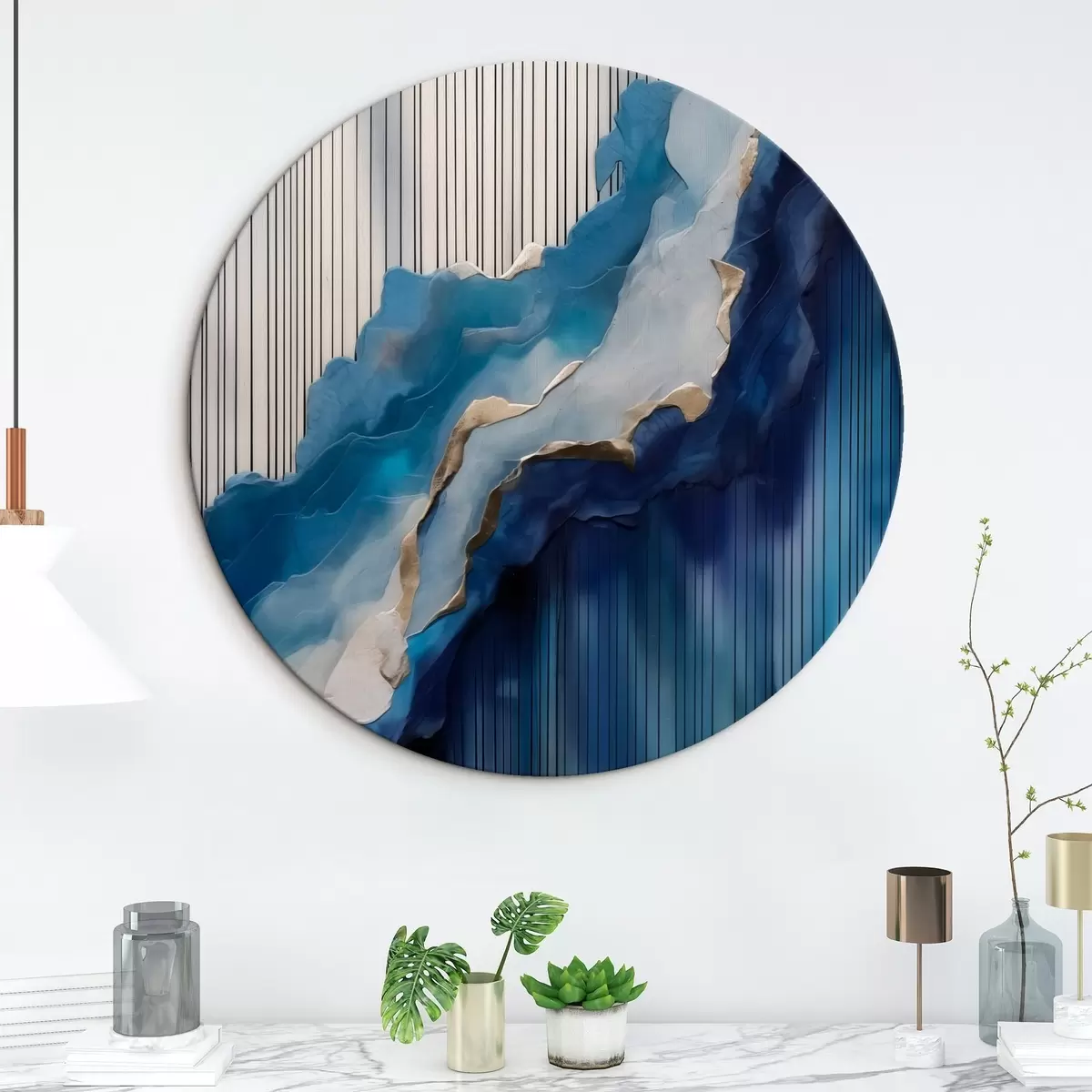 Runde Wandbilder Abstrakte blaue Texturen mit Linien im Hintergrund r43002