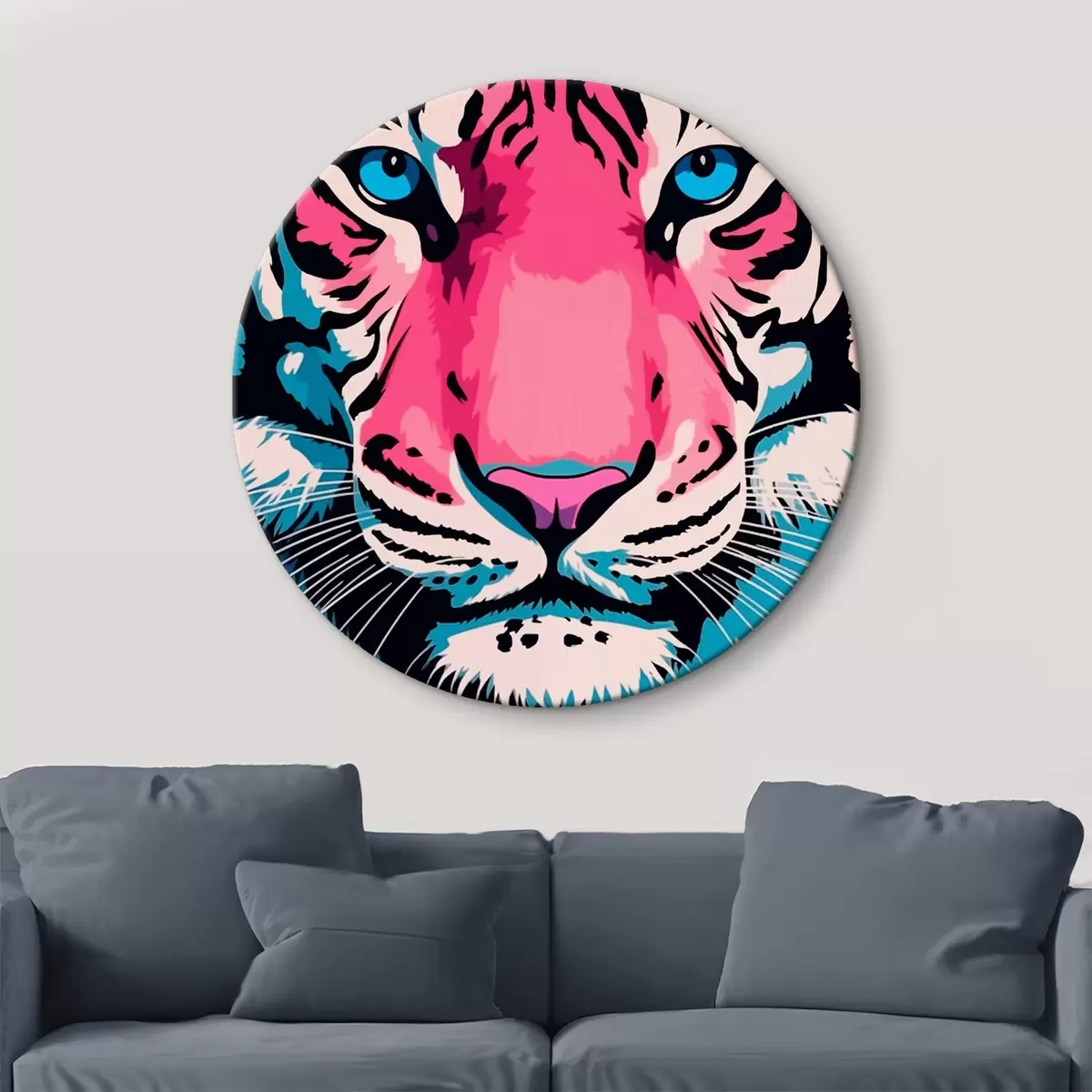 Runde Wandbilder Stilisiertes Porträt eines Tigers in hellen Farben Nr r43007