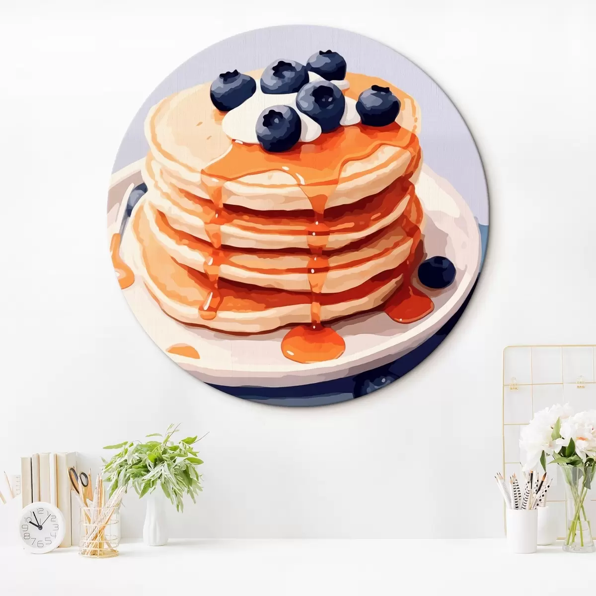Runde Wandbilder Pfannkuchen mit Sirup und Blaubeeren auf einem Teller Nr r43009