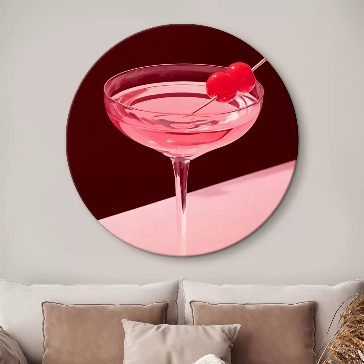 Runde Wandbilder Cocktailglas mit einer Kirsche r43016