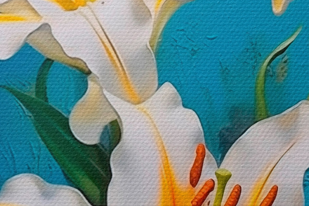 Drei Materialtypen stehen zur Verfügung: Economic Canvas - ein dichtes und haltbares Material für den Digitaldruck, identisch mit Malerleinwand, wasserfeste Oberfläche, realistische Wiedergabe von Details, mittelkörniges Material. Premium Canvas - die Textur ähnelt der einer Malerleinwand (verwobene kleine Fäden). Weiche, detaillierte Wiedergabe des Bildes auf einer matten Oberfläche. Eco-Premium - hochwertiges Gewebe aus 100% Baumwolle. Dank der natürlichen Baumwollfasern ist das Material langlebig und verschleißfest. Hervorragende Farbwiedergabe und Detailtreue.