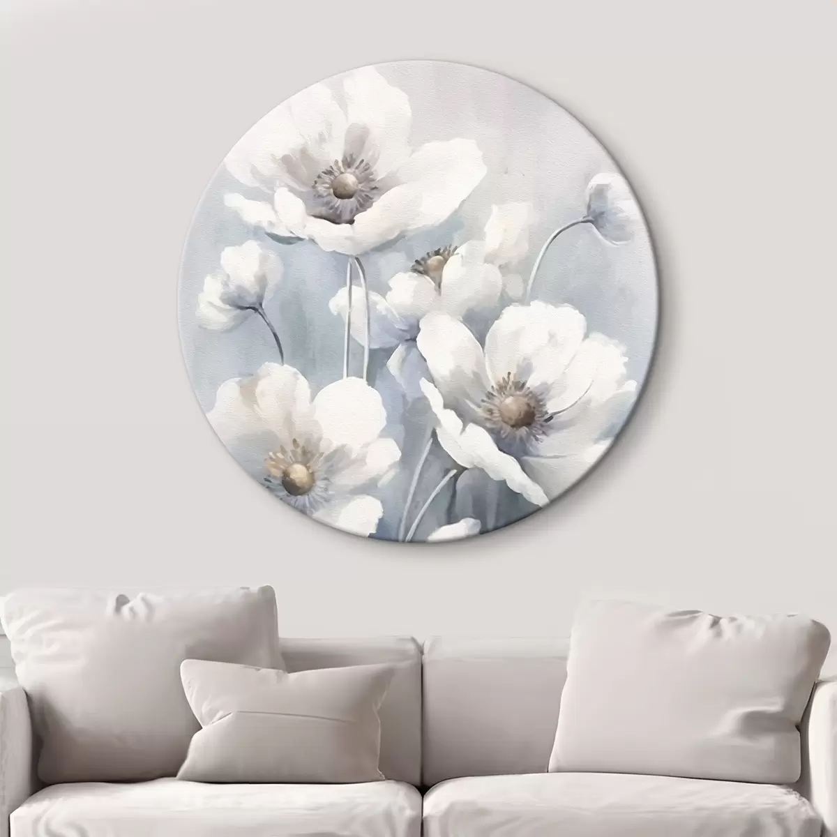Runde Wandbilder Weiße Vintage-Blumen Nr r43046