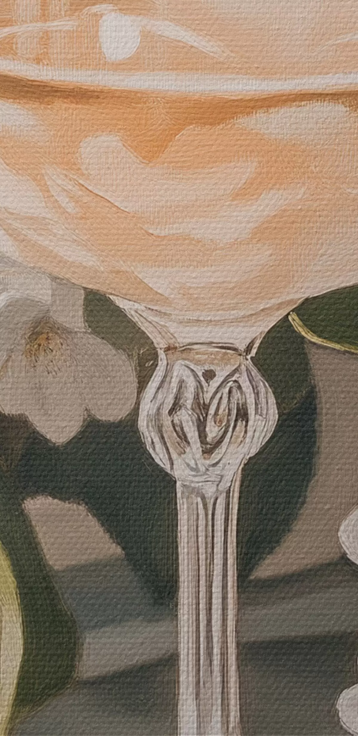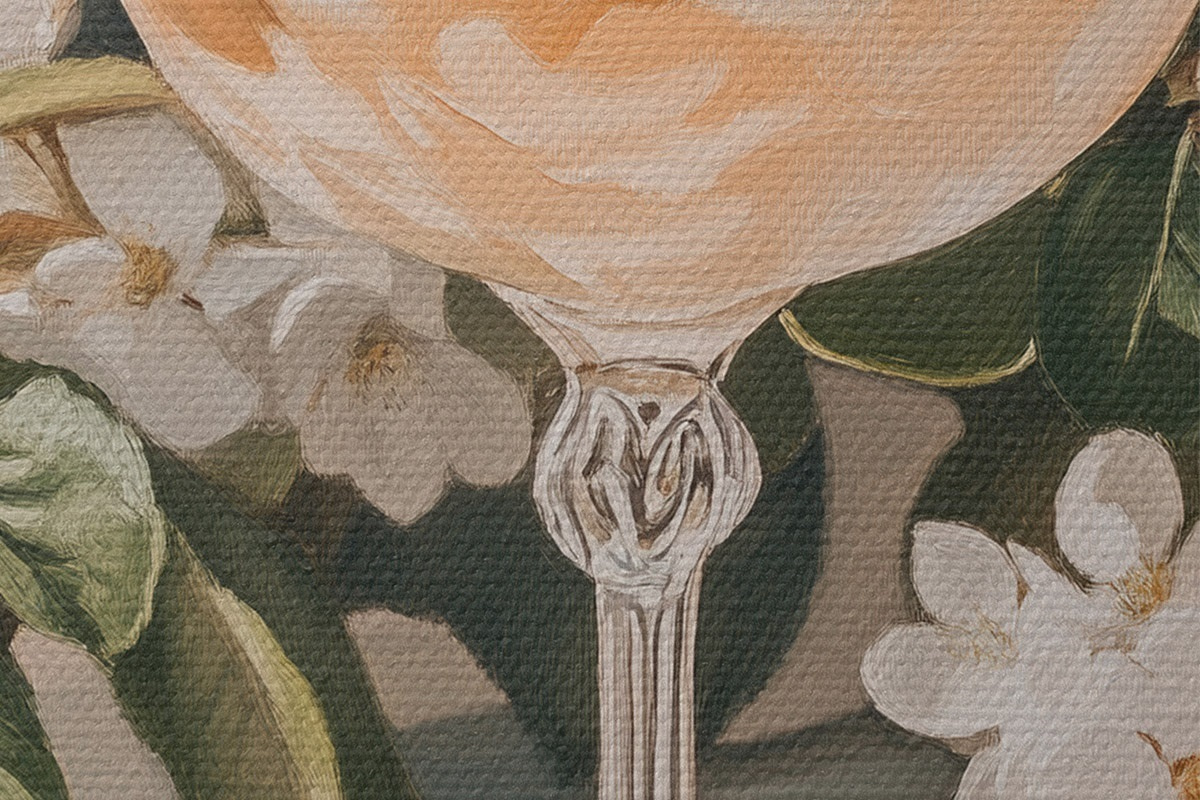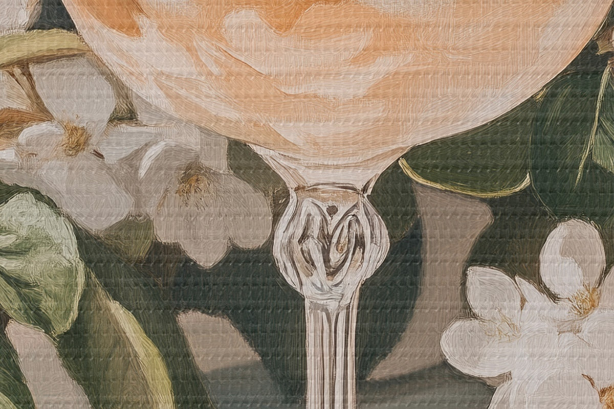 Runde Wandbilder Glas Champagner, Vintage, Aquarellstil, weiße Blumen r43051