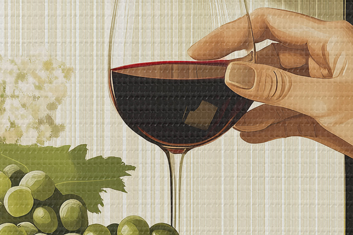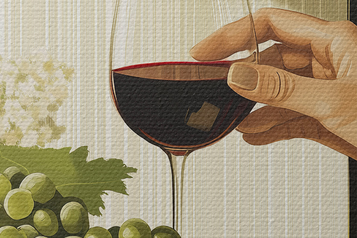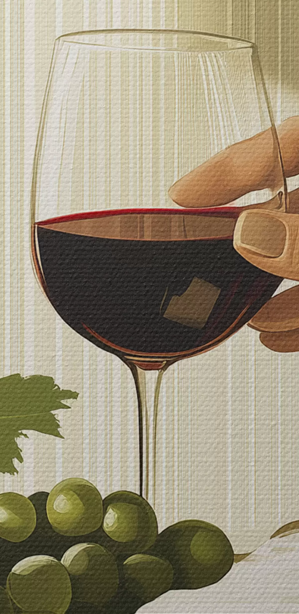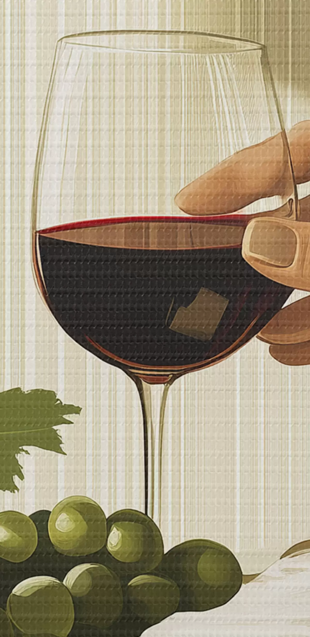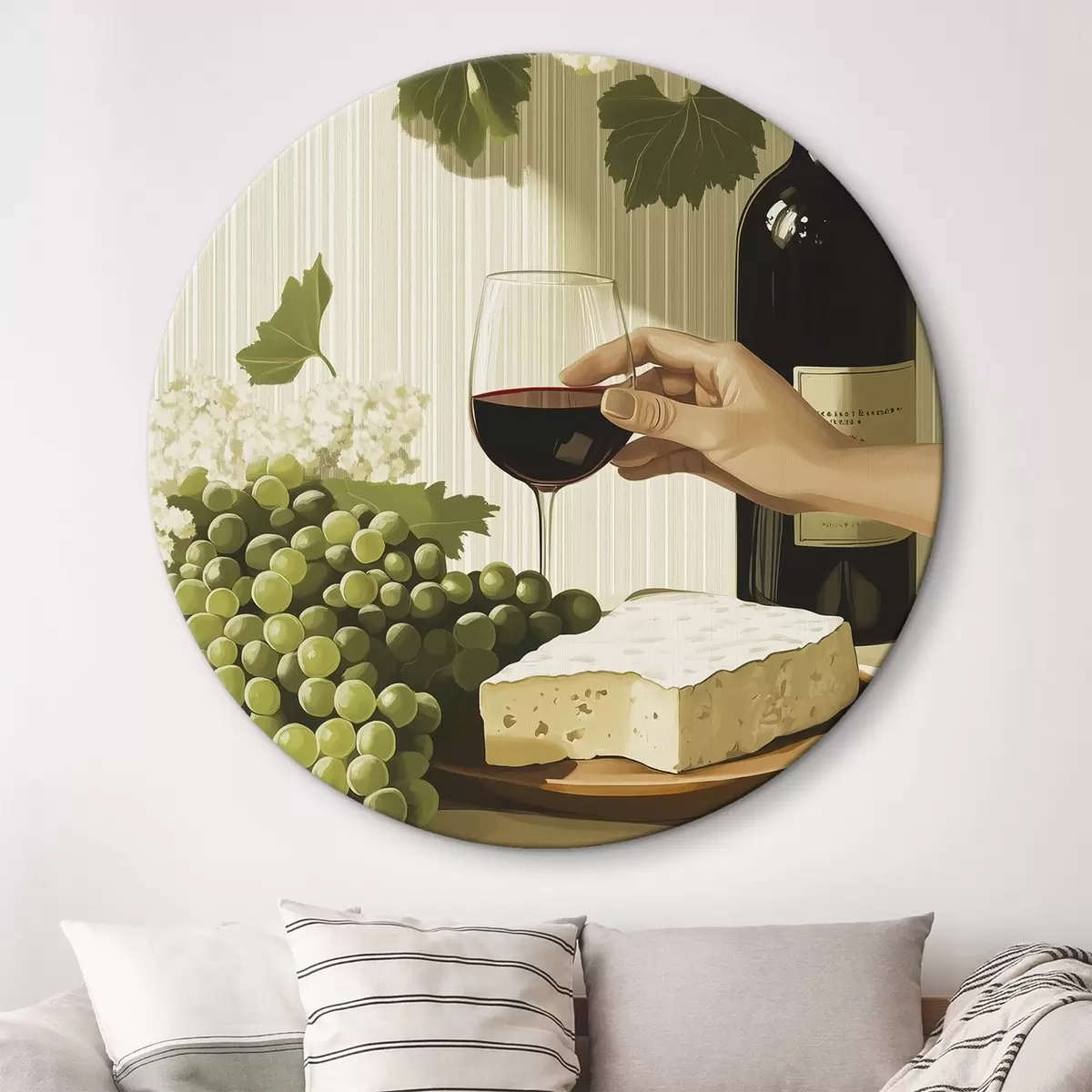Runde Wandbilder Weintrauben mit Käse, Flasche Wein, Vintage-Stil, weiße Blumen r43052