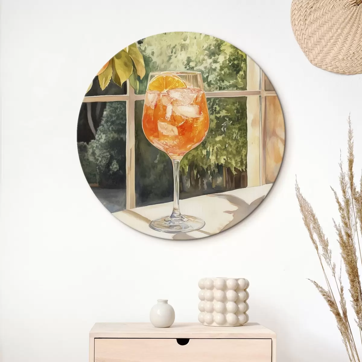 Runde Wandbilder Leckerer Cocktail mit Orangen, rustikaler Stil, Aquarell, Natur Nr r43060