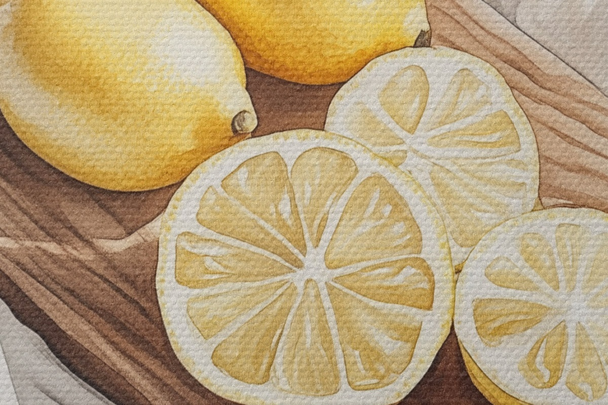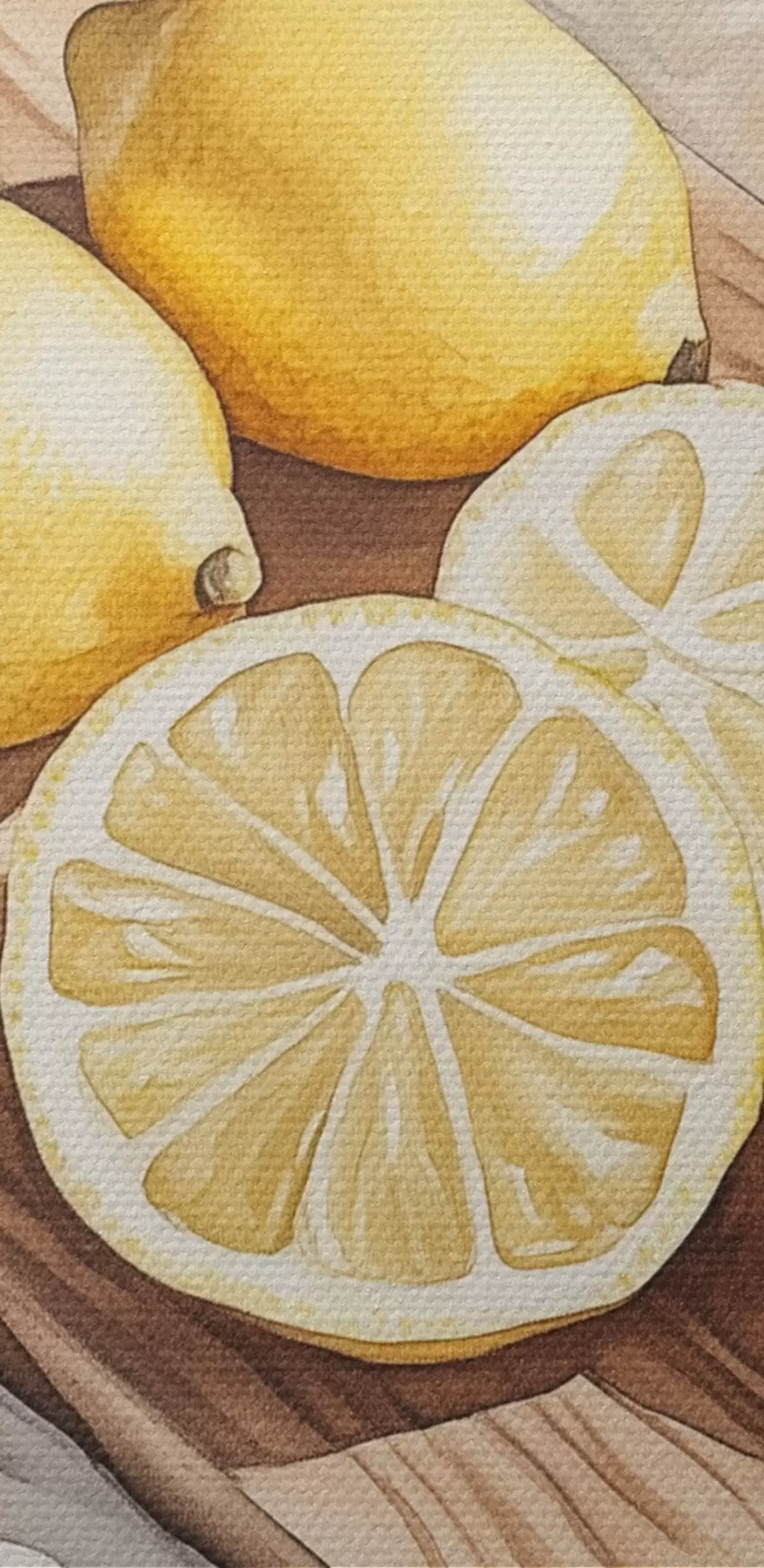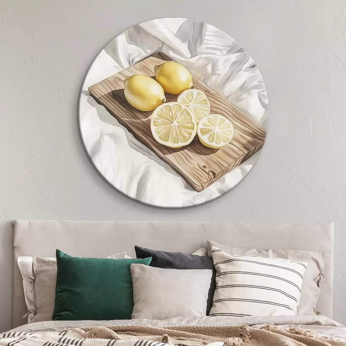 Runde Wandbilder Zitronen auf dem Holzbrett, Aquarell, rustikaler Stil r43064