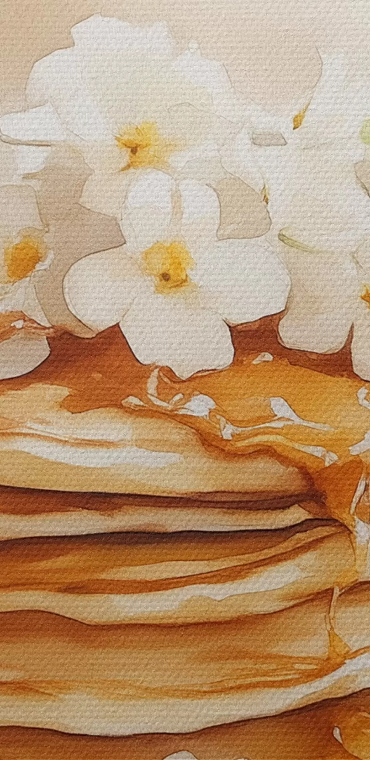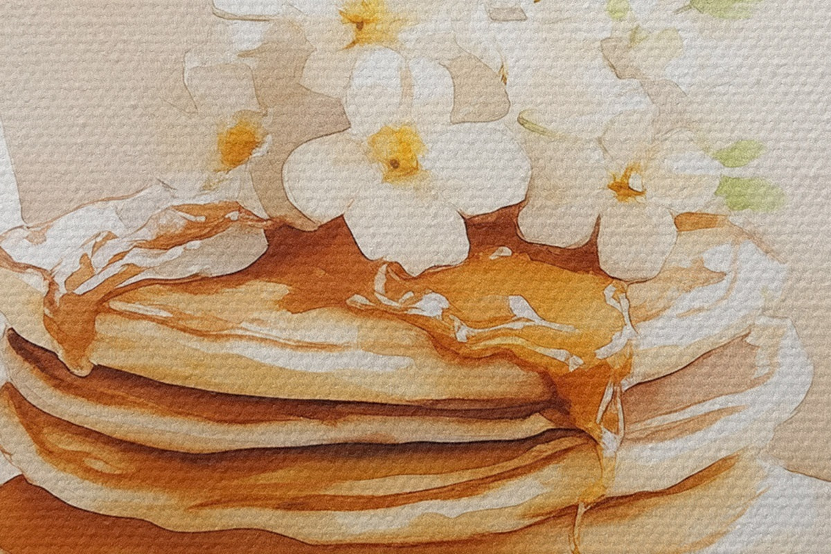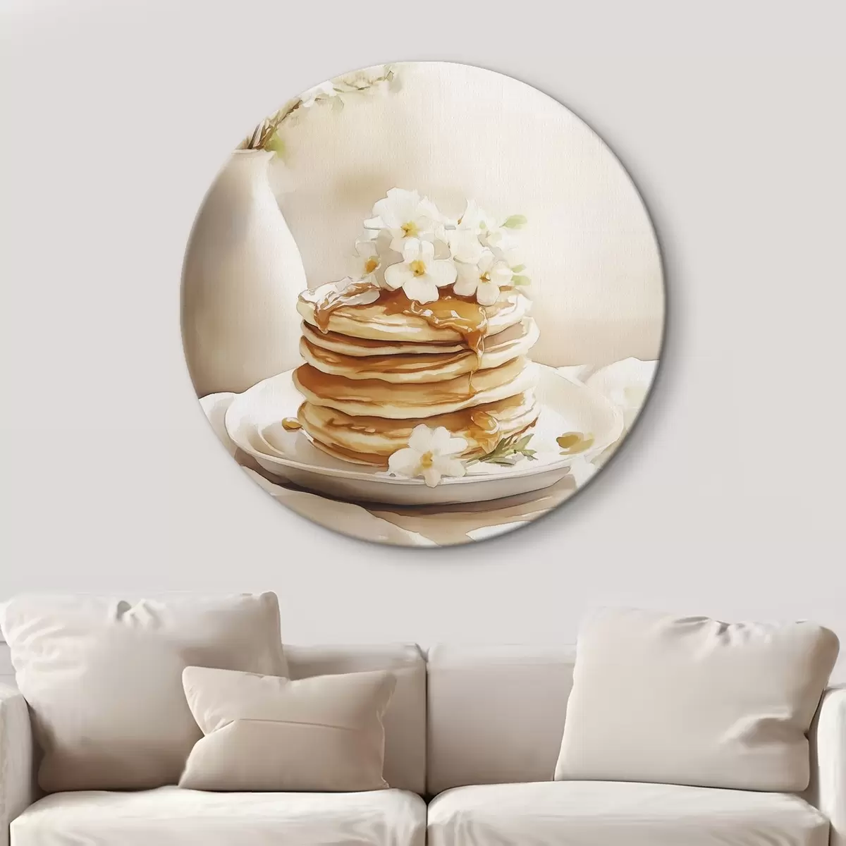 Runde Wandbilder Pfannkuchen mit Erdnussbutter, weiße Blumen, Zeichnung im Aquarellstil Nr r43065