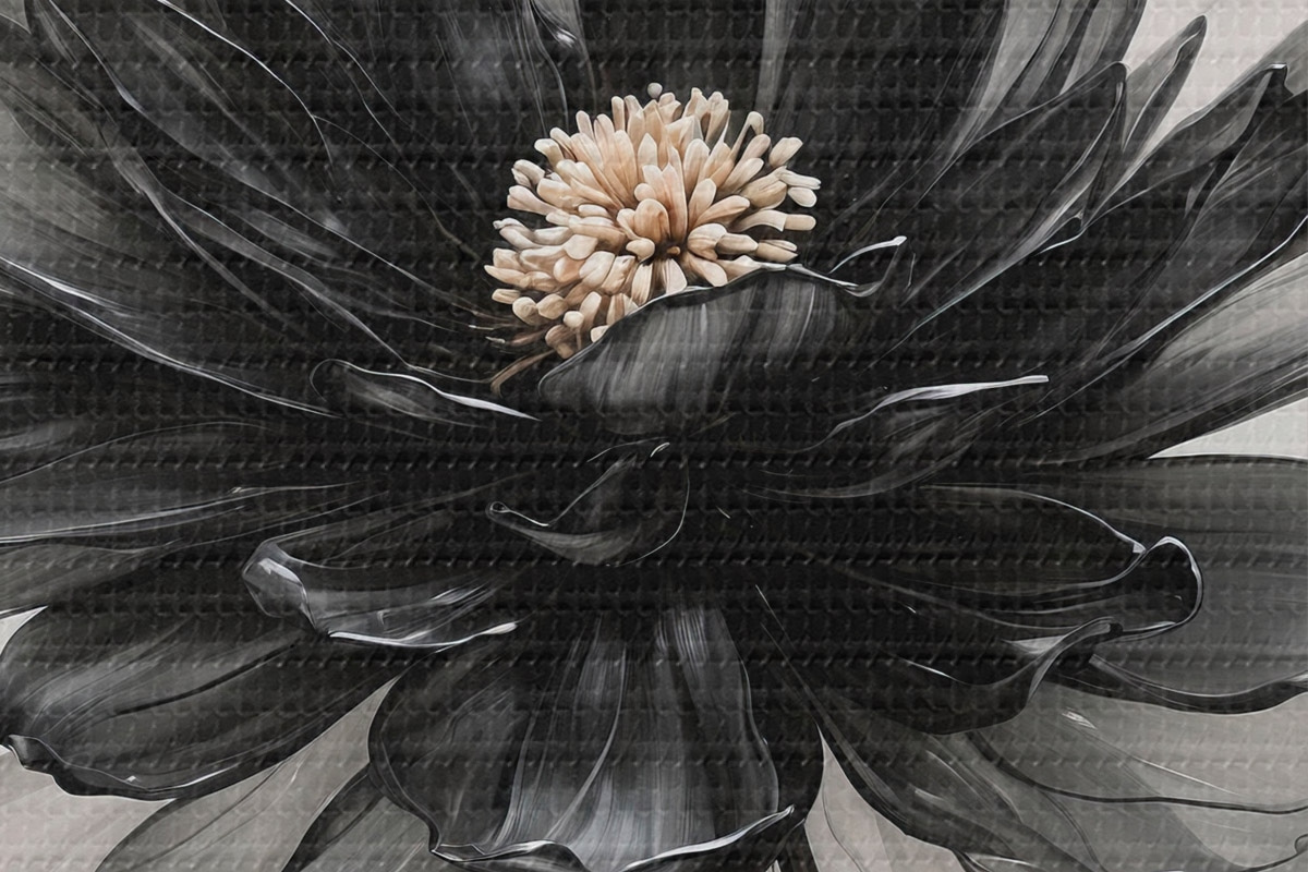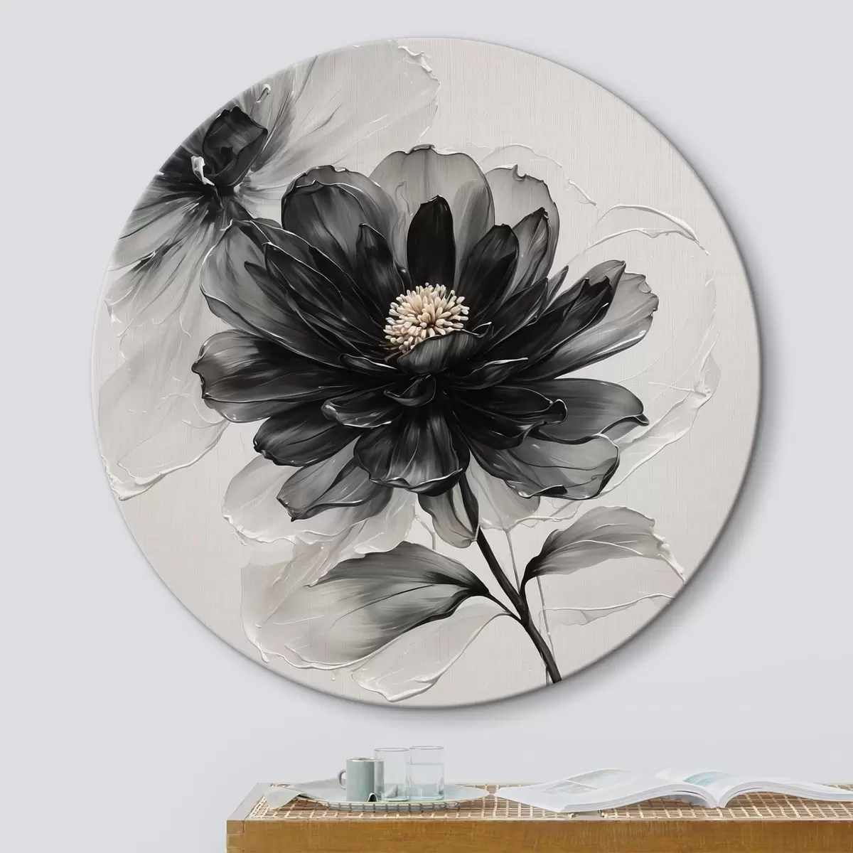Runde Wandbilder Schwarze transparente Blume auf weißem Hintergrund r43099